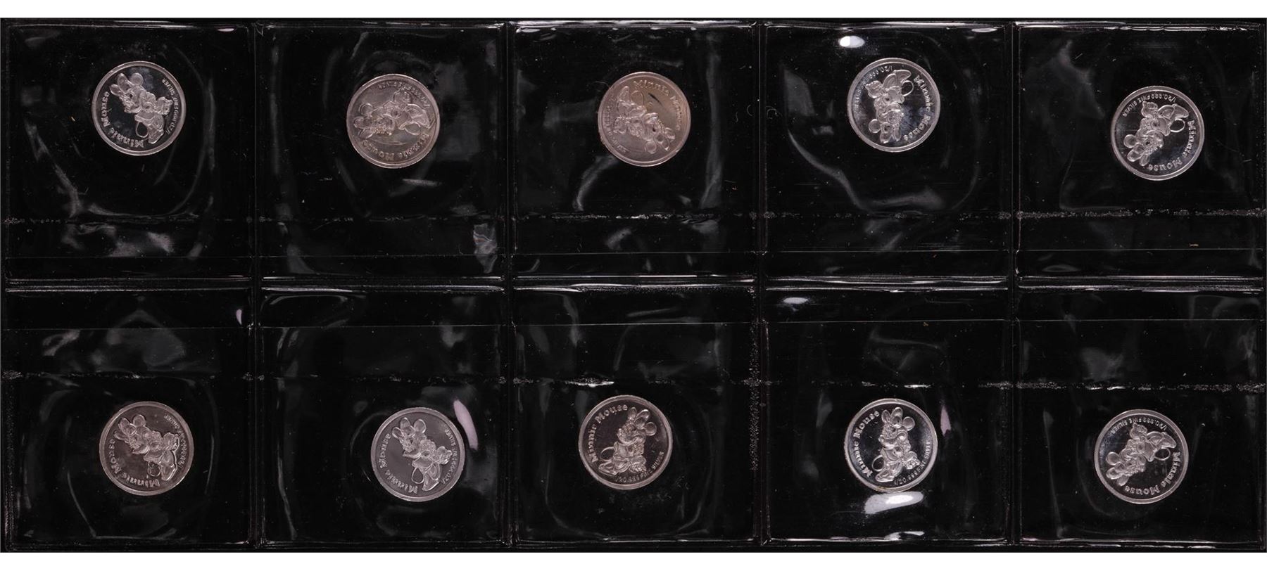 One Lot of (10) Disney Mickey & Minnie Mouse 1/20 oz. .999 Fine Silver Coin Rounds.