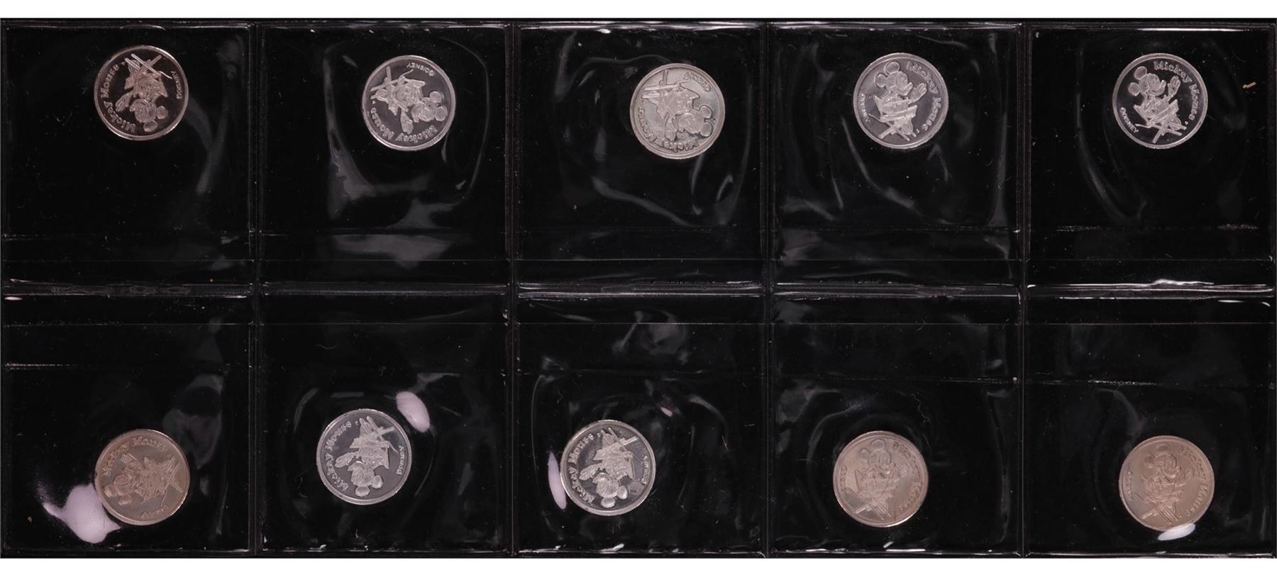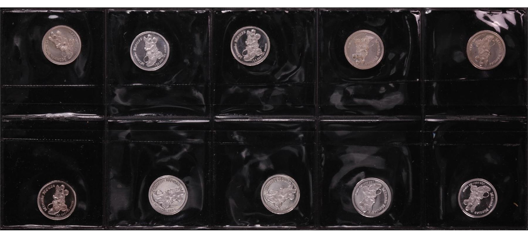 One Lot of (10) Disney Mickey & Minnie Mouse 1/20 oz. .999 Fine Silver Coin Rounds.