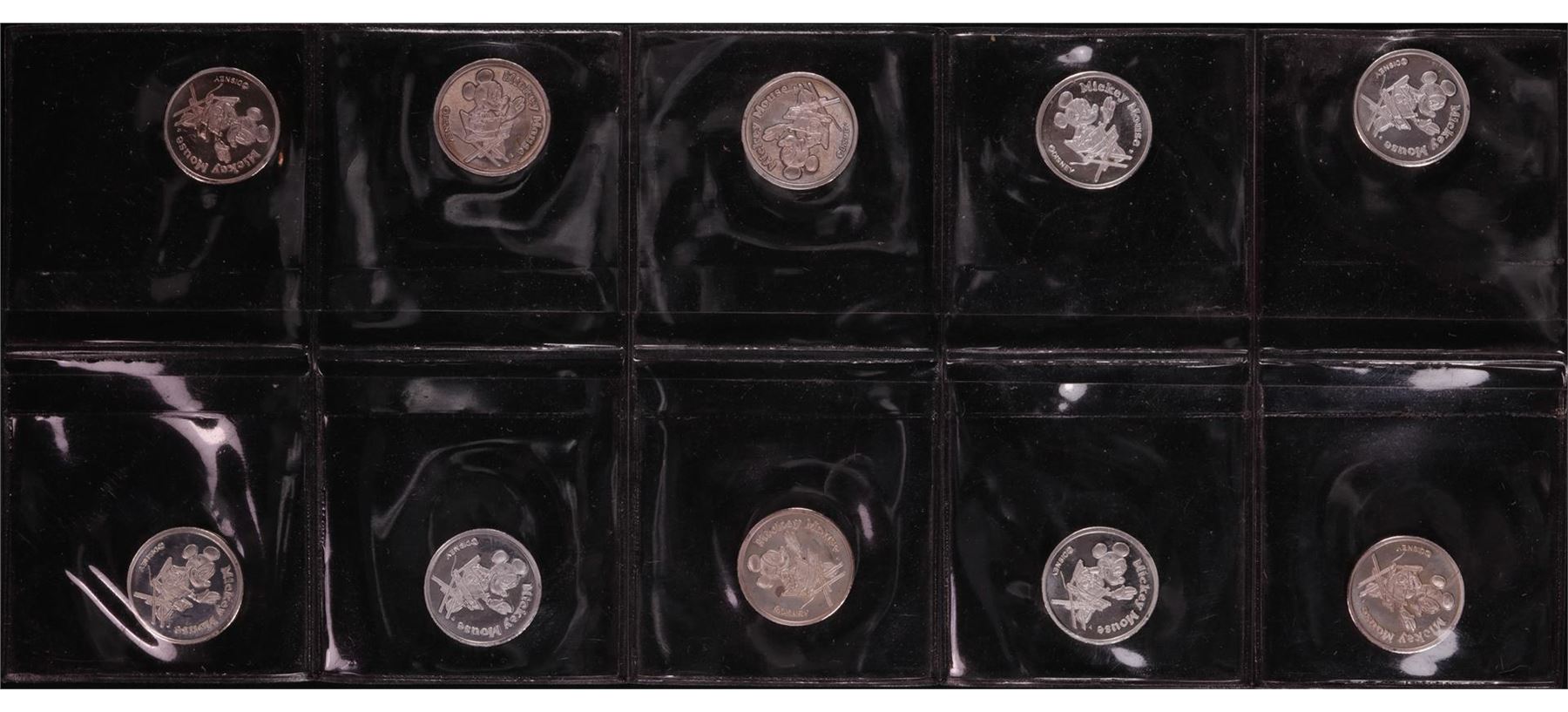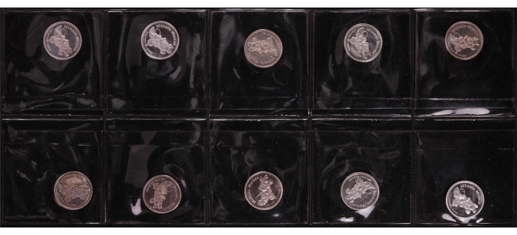 One Lot of (10) Disney Mickey & Minnie Mouse 1/20 oz. .999 Fine Silver Coin Rounds.
