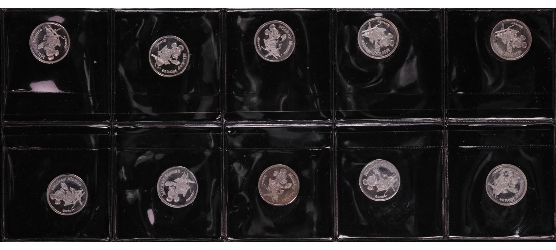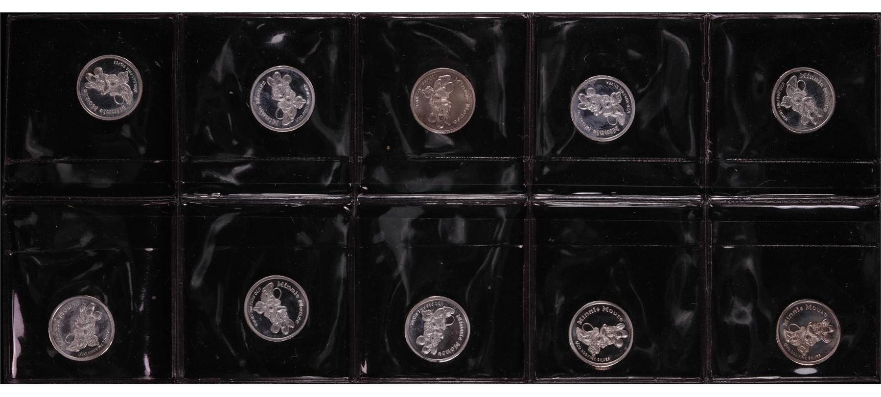 One Lot of (10) Disney Mickey & Minnie Mouse 1/20 oz. .999 Fine Silver Coin Rounds.