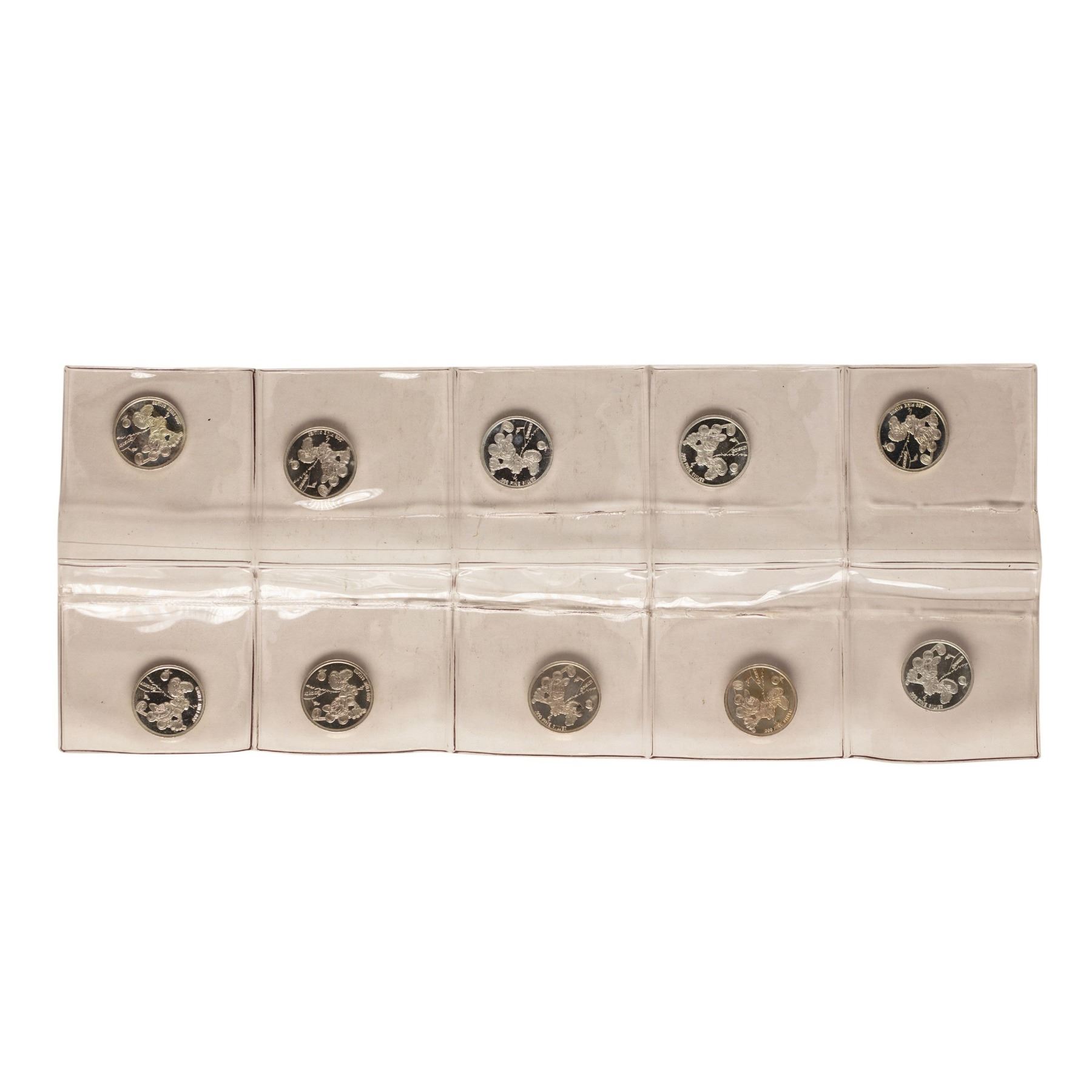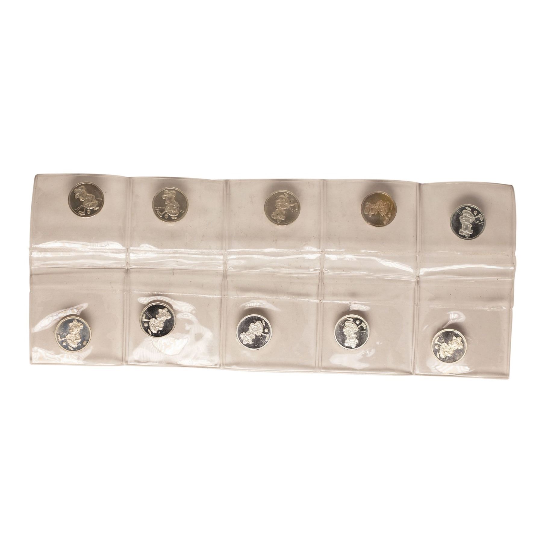 One Lot of (10) Disney Mickey & Minnie Mouse Golfer 1/20 oz. .999 Fine Silver Coin Rounds.