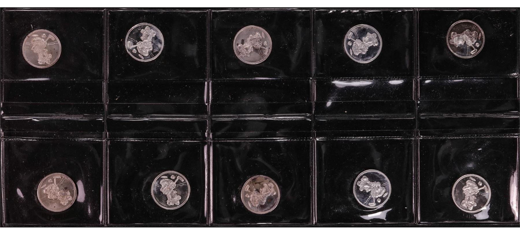 One Lot of (10) Disney Mickey & Minnie Mouse Golfer 1/20 oz. .999 Fine Silver Coin Rounds.