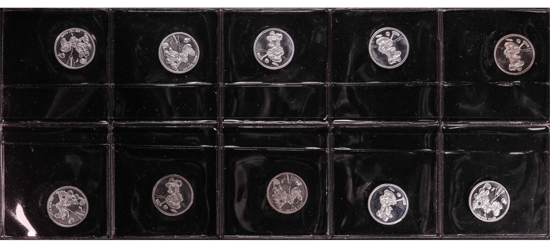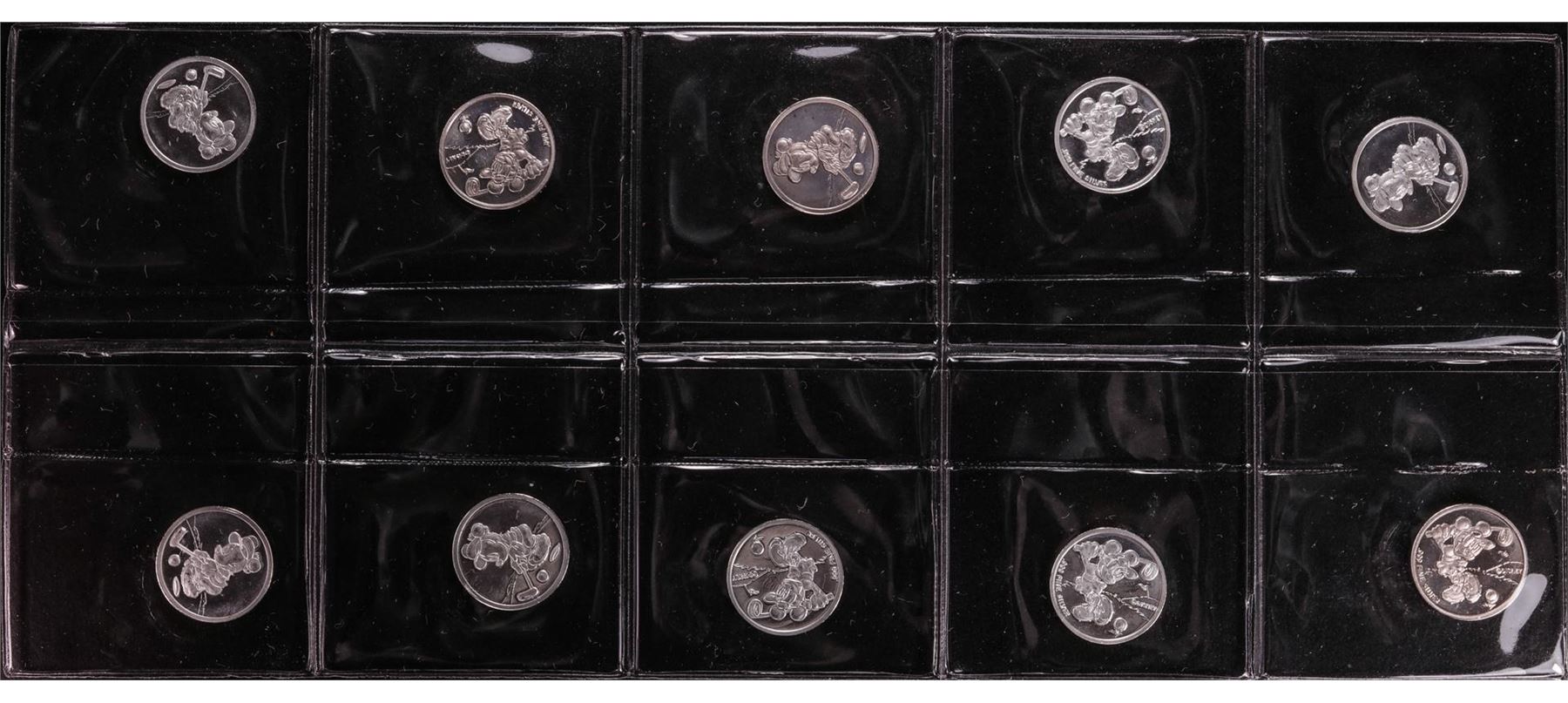 One Lot of (10) Disney Mickey & Minnie Mouse Golfer 1/20 oz. .999 Fine Silver Coin Rounds.