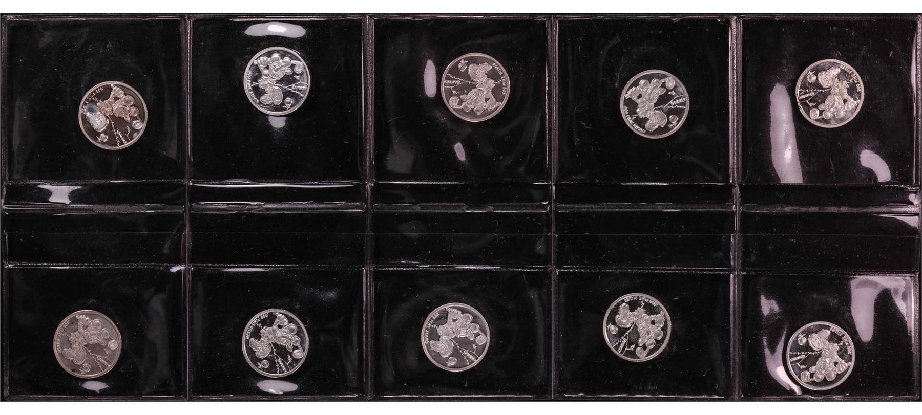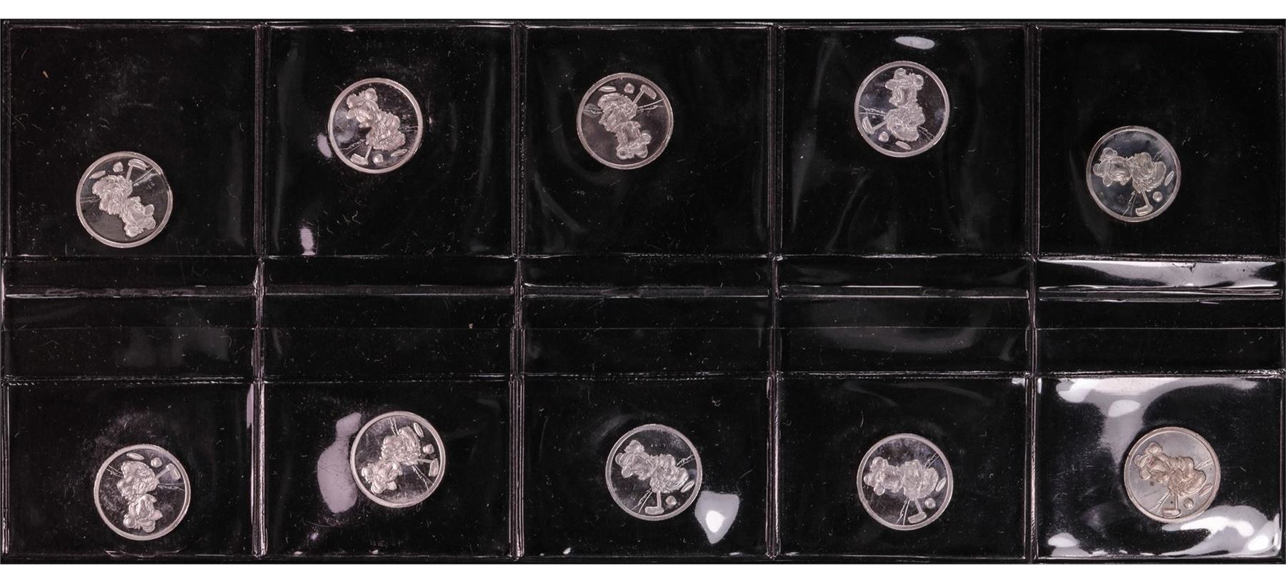 One Lot of (10) Disney Mickey & Minnie Mouse Golfer 1/20 oz. .999 Fine Silver Coin Rounds.