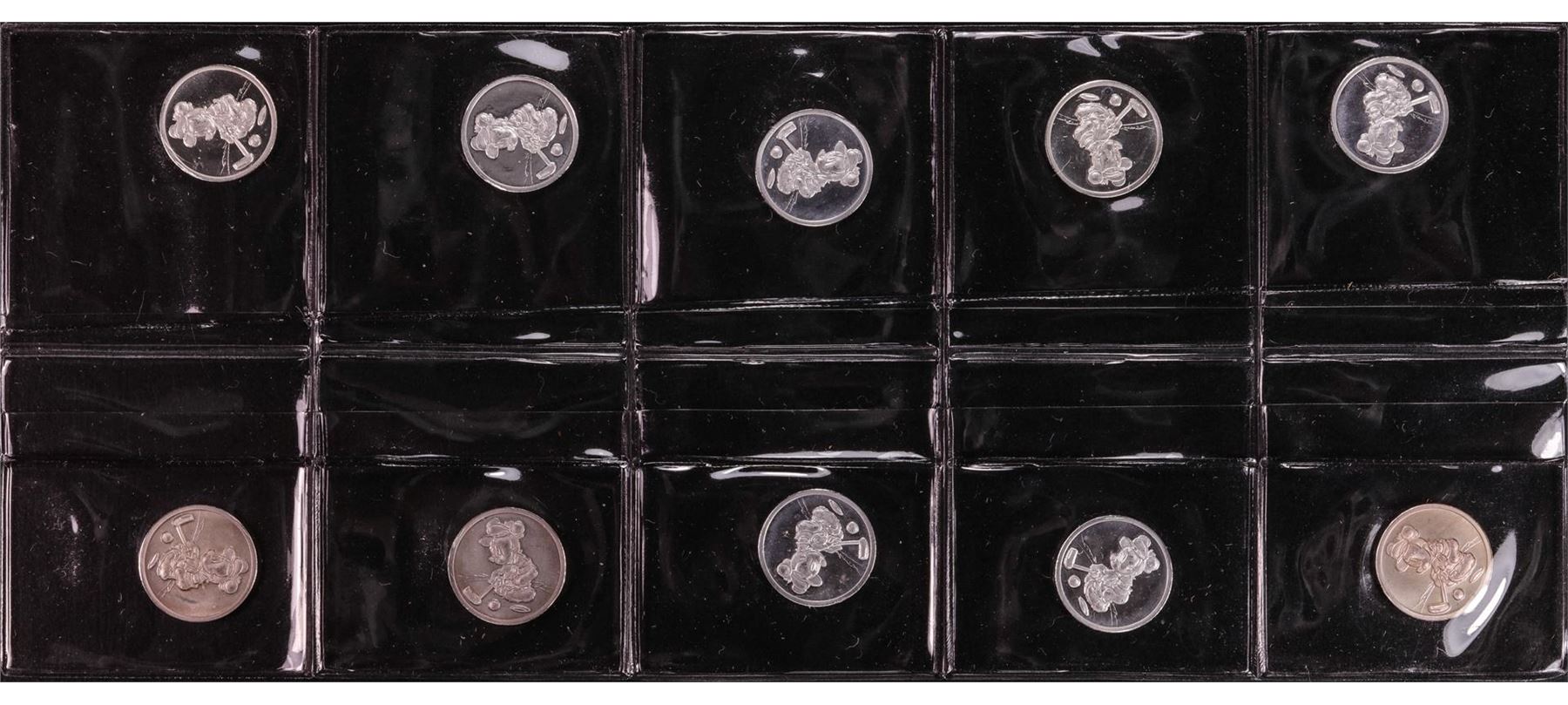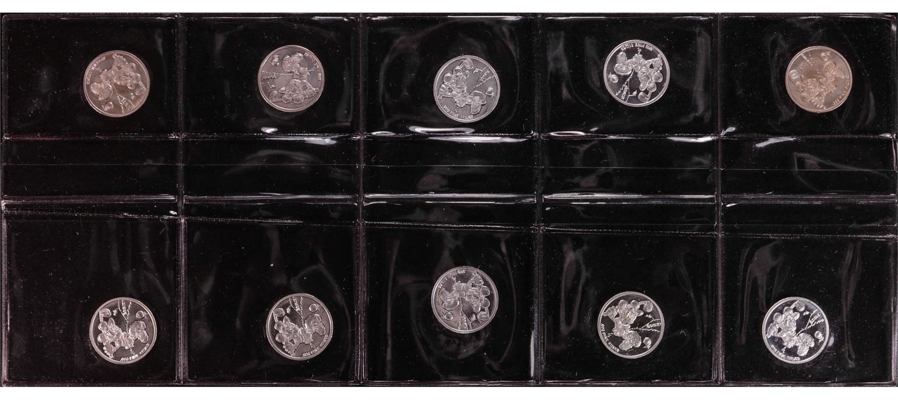 One Lot of (10) Disney Mickey & Minnie Mouse Golfer 1/20 oz. .999 Fine Silver Coin Rounds.