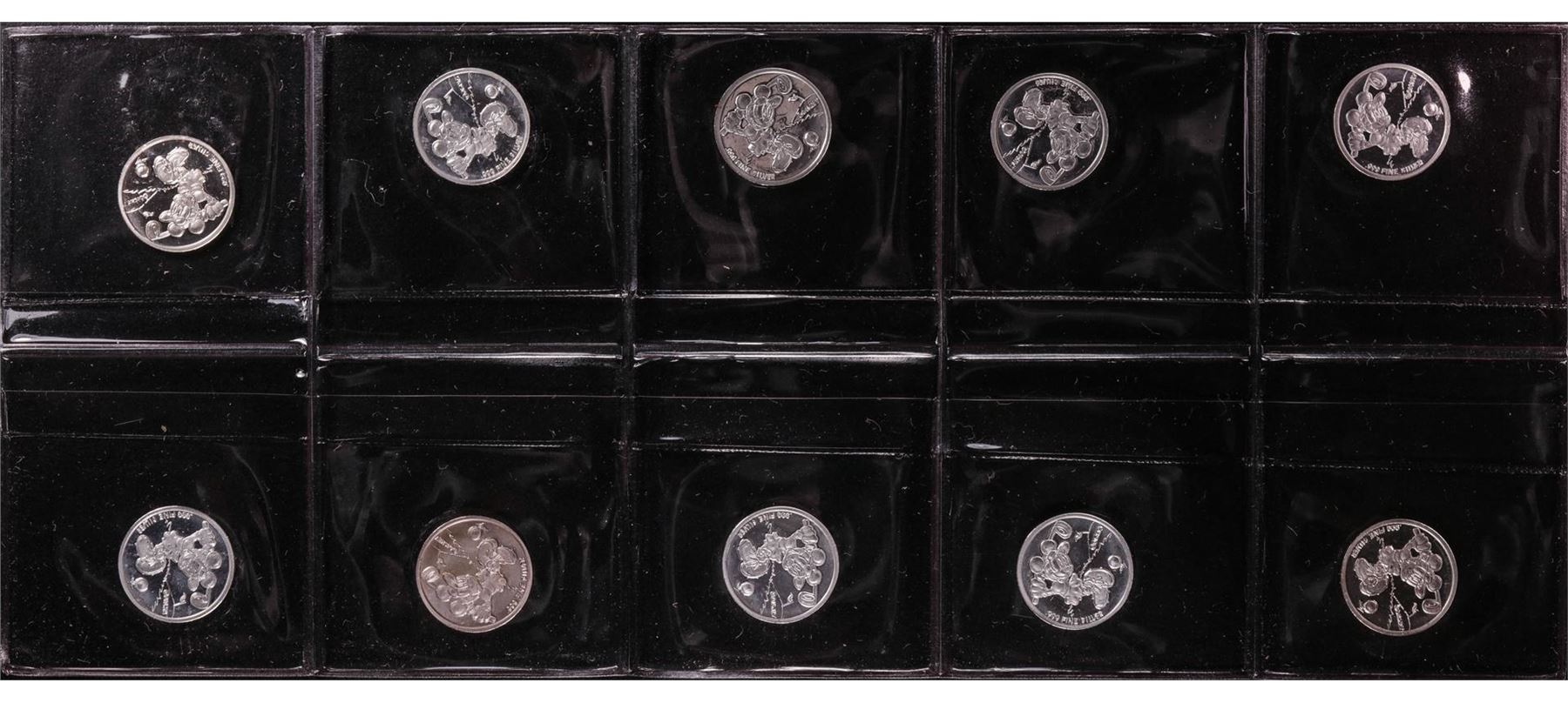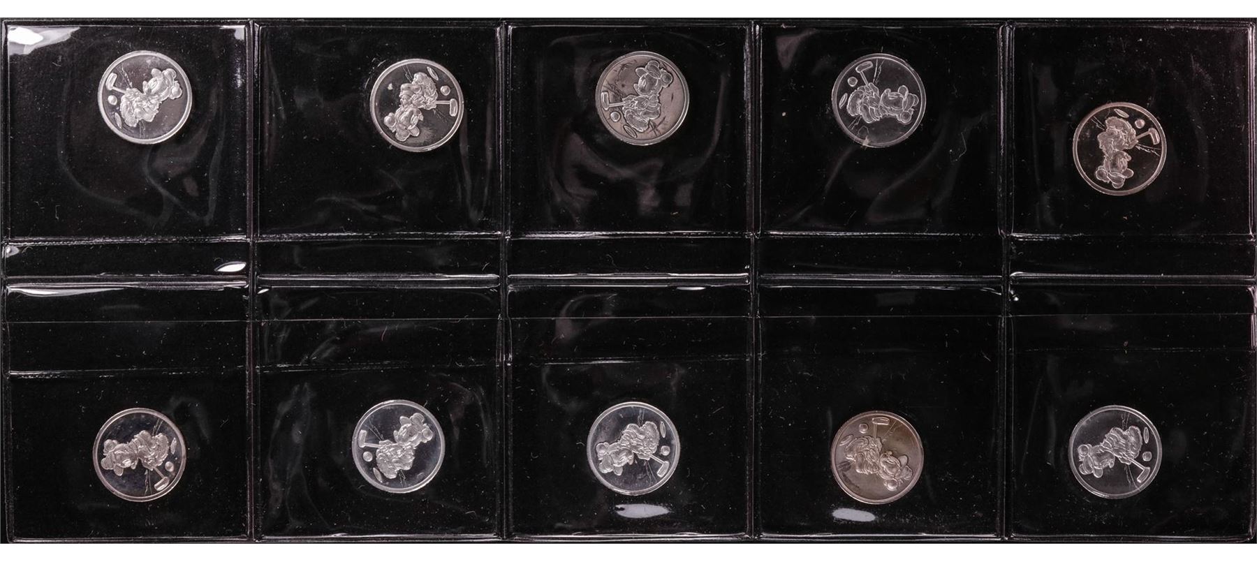 One Lot of (10) Disney Mickey & Minnie Mouse Golfer 1/20 oz. .999 Fine Silver Coin Rounds.