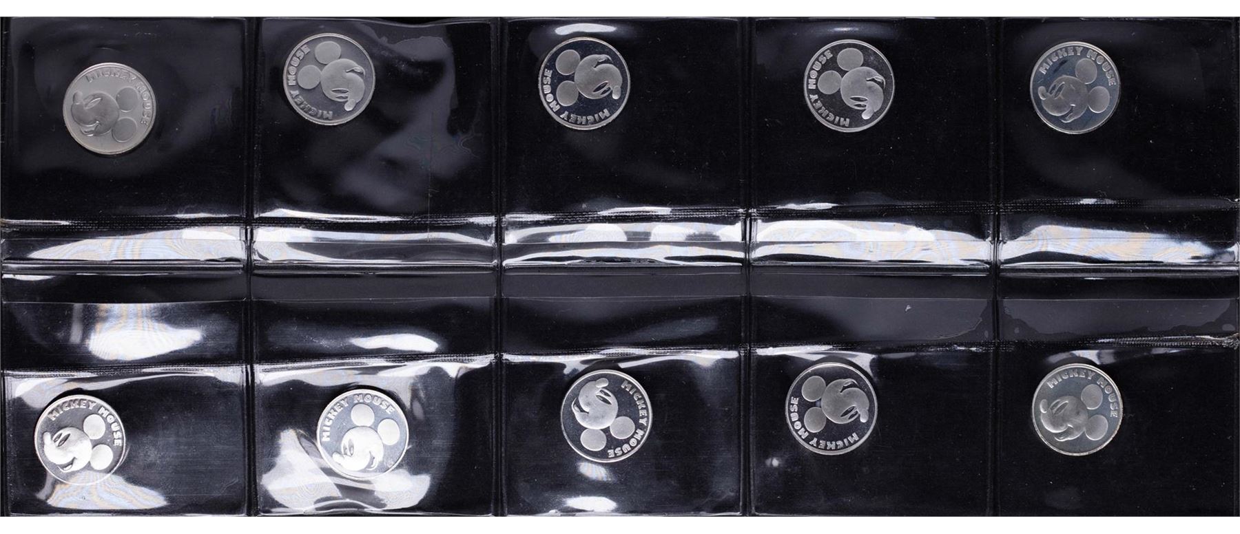 One Lot of (10) Disney Mickey Mouse 1/20 oz. .999 Fine Silver Coin Rounds.