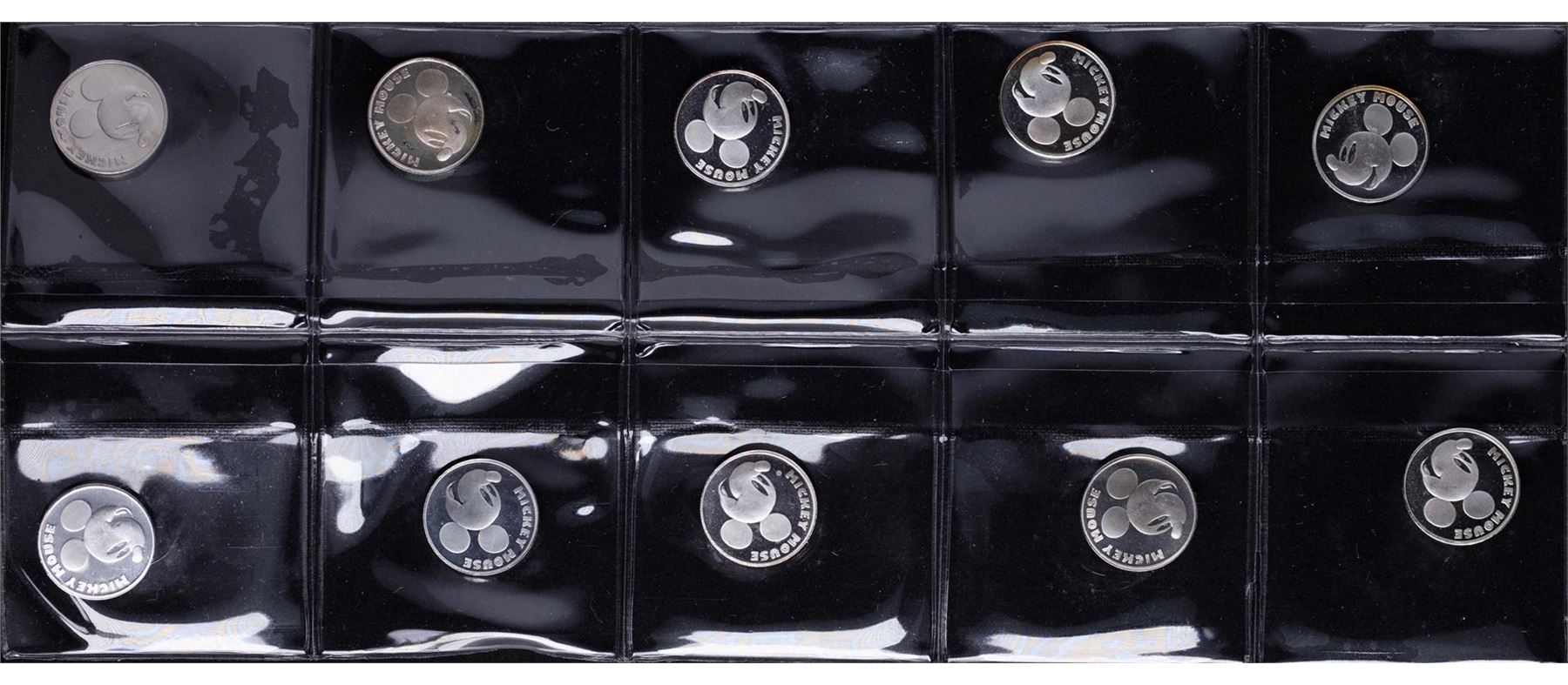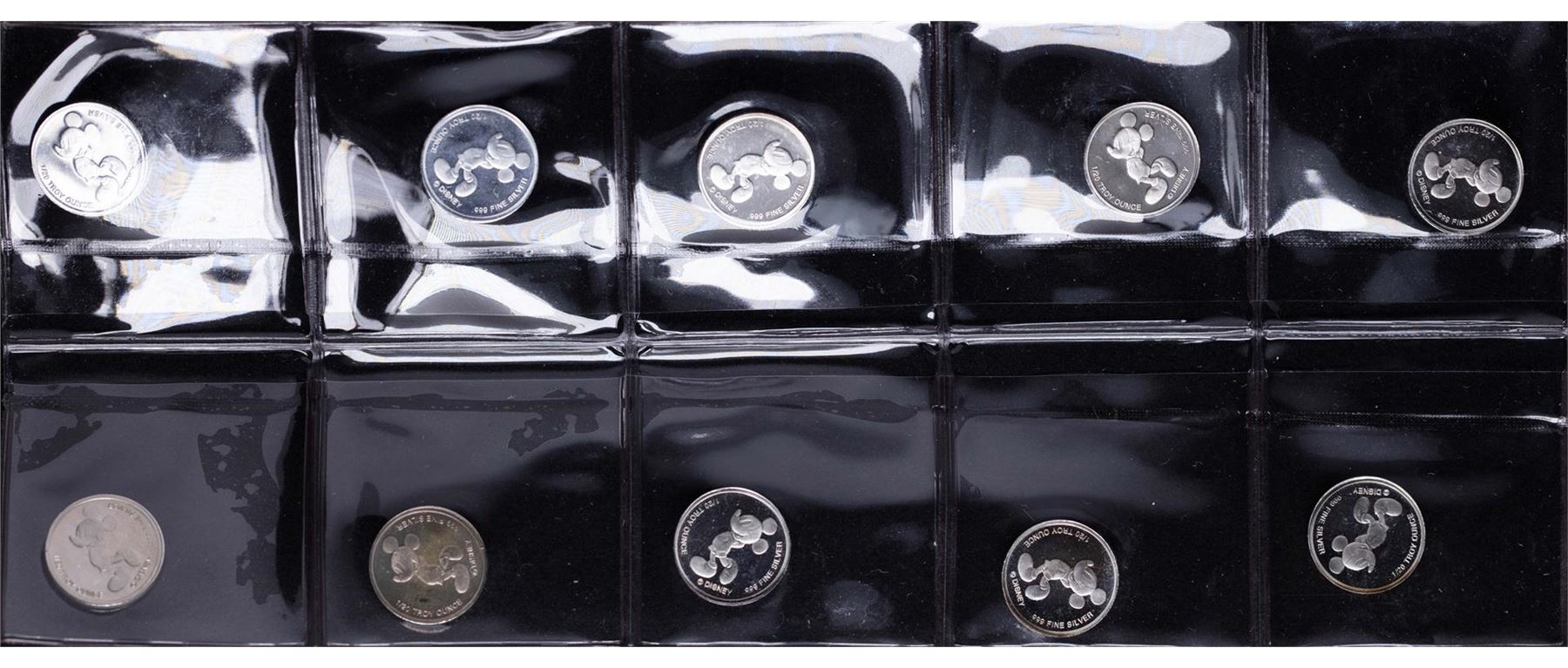 One Lot of (10) Disney Mickey Mouse 1/20 oz. .999 Fine Silver Coin Rounds.