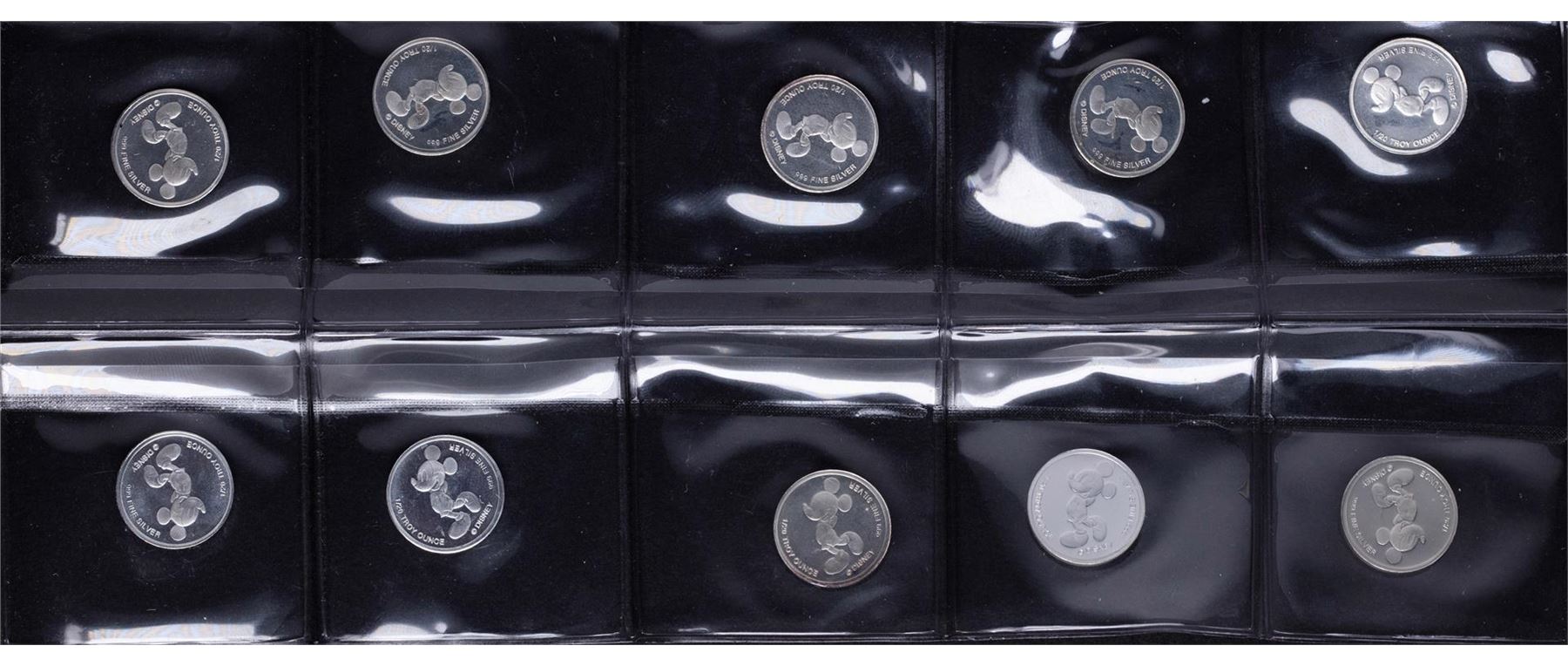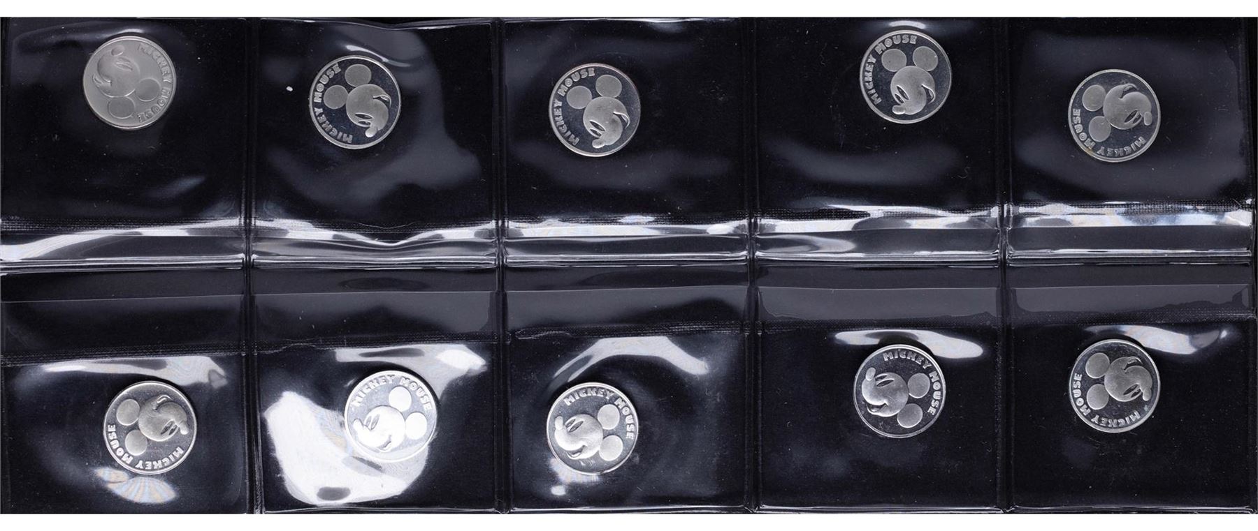 One Lot of (10) Disney Mickey Mouse 1/20 oz. .999 Fine Silver Coin Rounds.