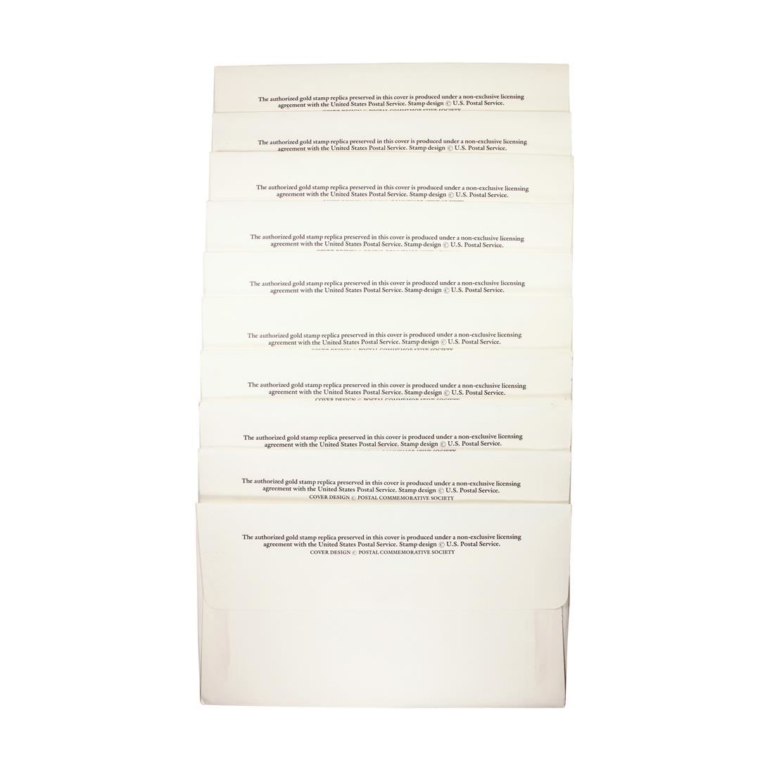 Lot of (10) First Day Of Issue 22KT Gold Replica Stamps in Envelopes