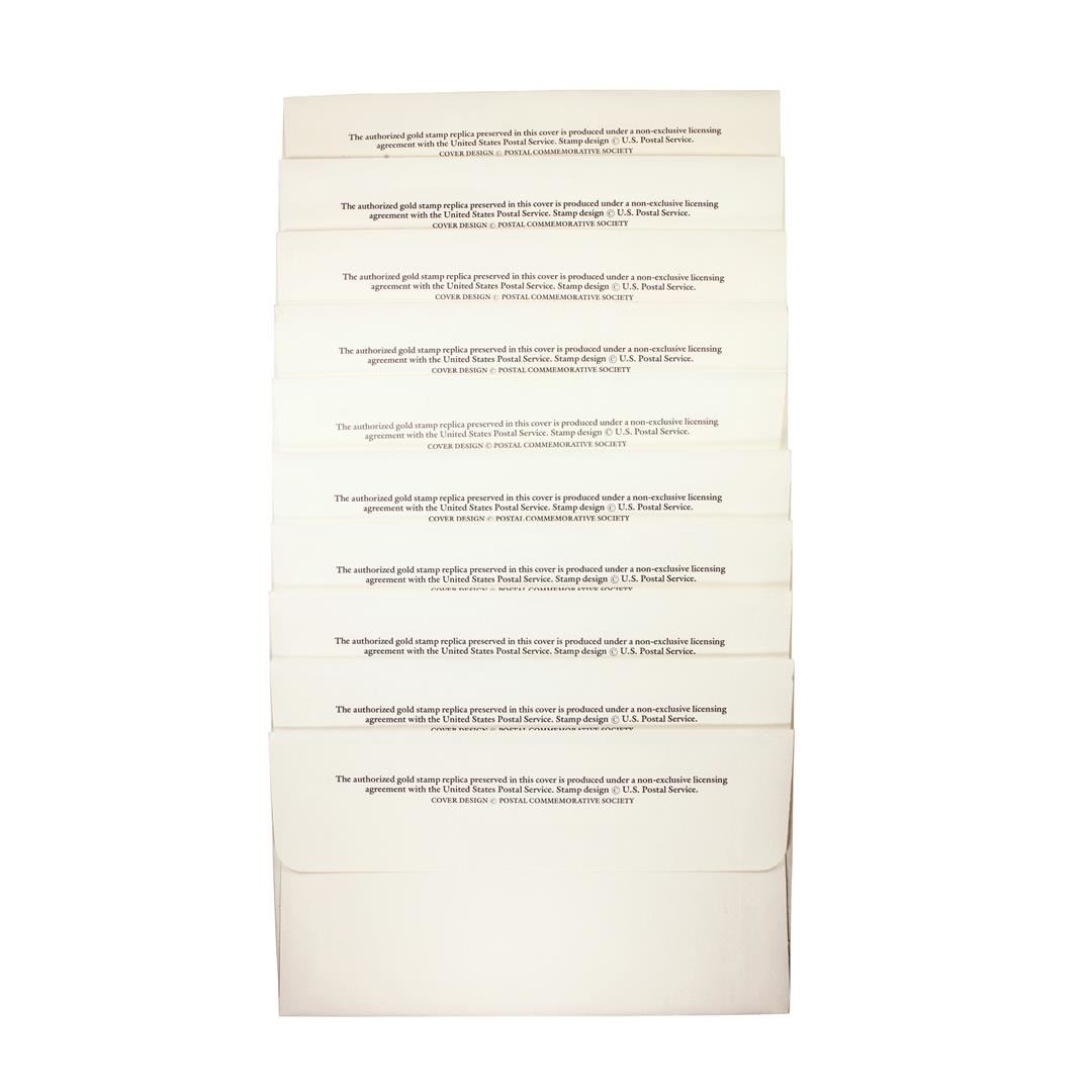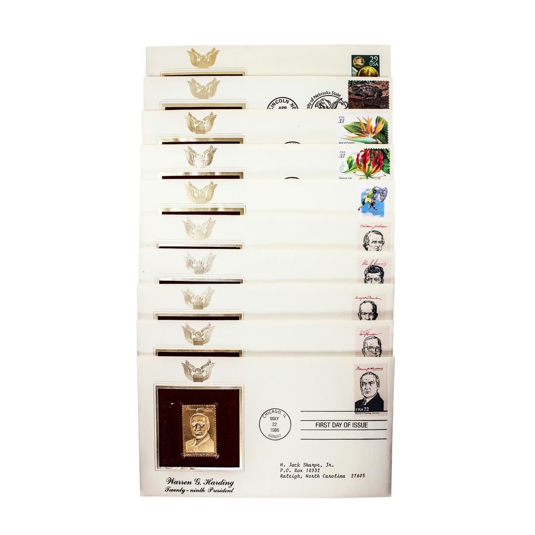 Lot of (10) First Day Of Issue 22KT Gold Replica Stamps in Envelopes