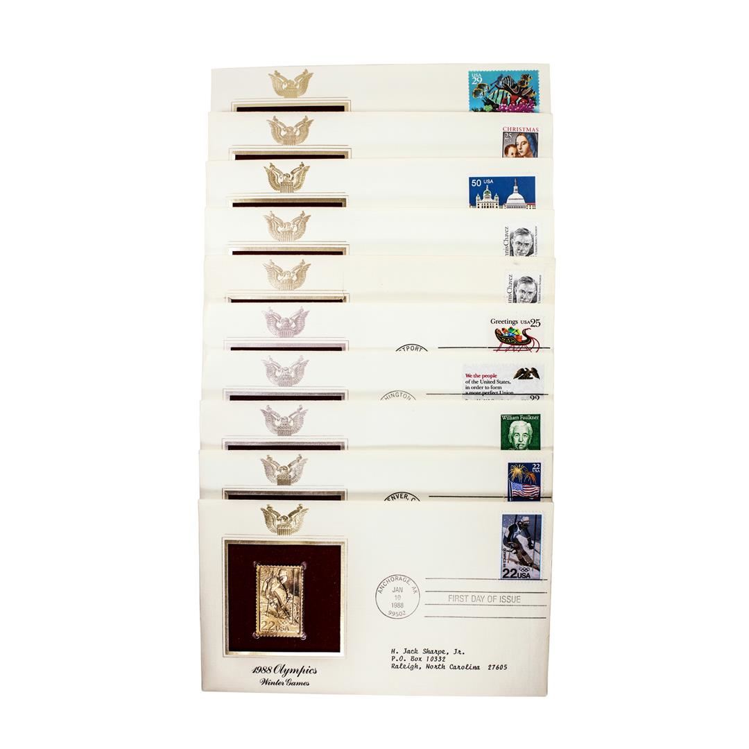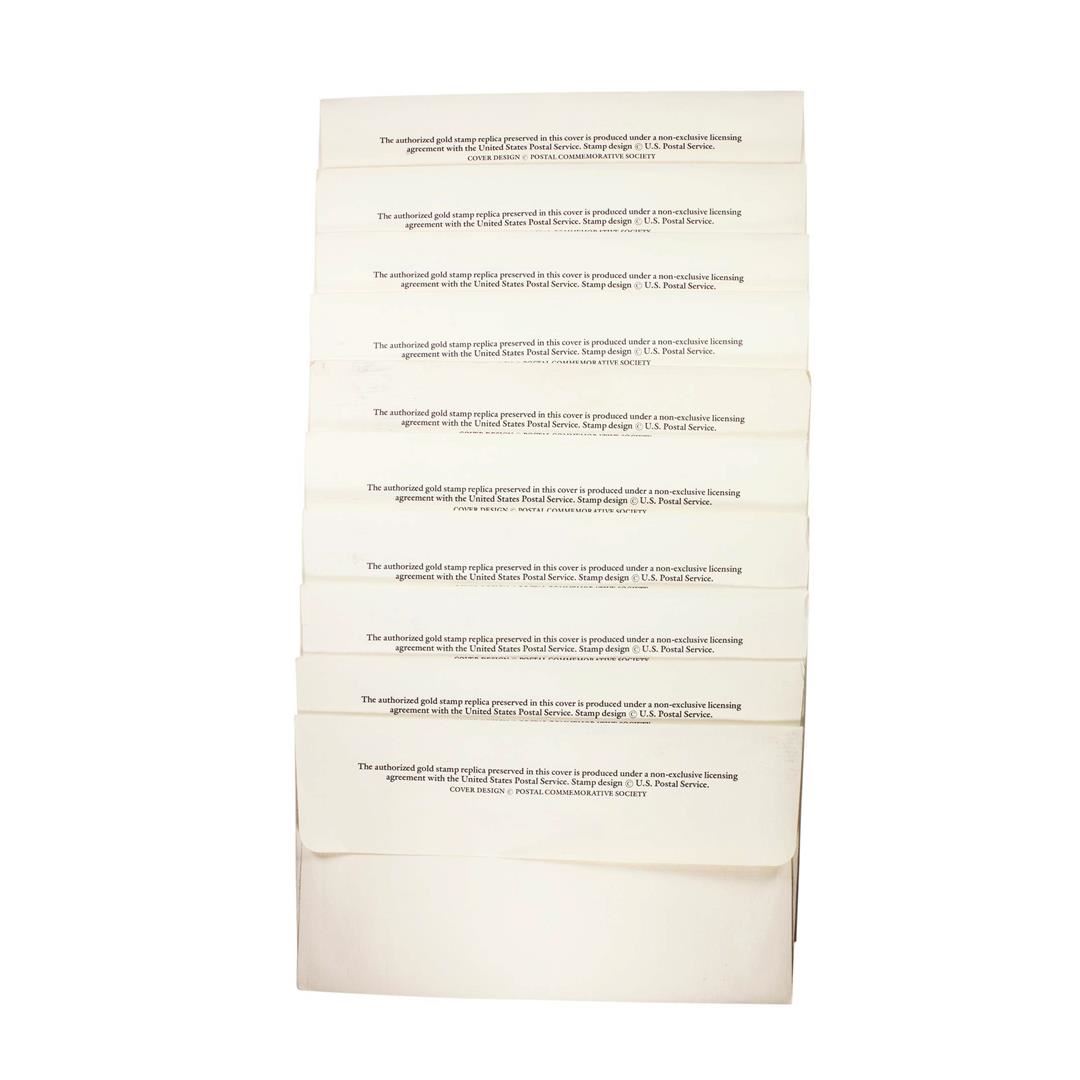 Lot of (10) First Day Of Issue 22KT Gold Replica Stamps in Envelopes