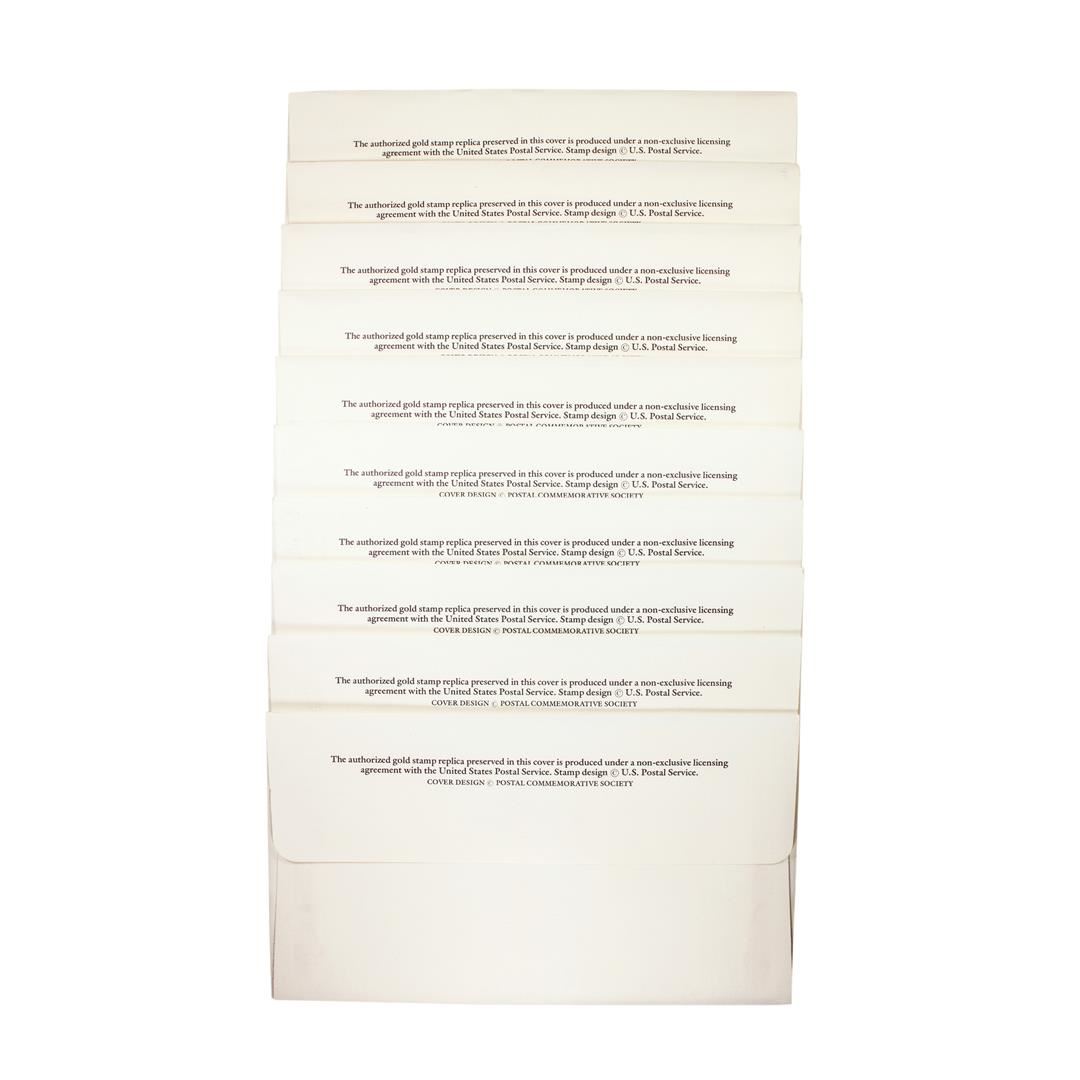 Lot of (10) First Day Of Issue 22KT Gold Replica Stamps in Envelopes