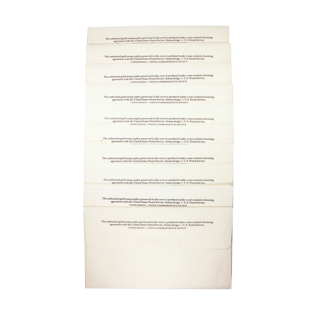 Lot of (10) First Day Of Issue 22KT Gold Replica Stamps in Envelopes