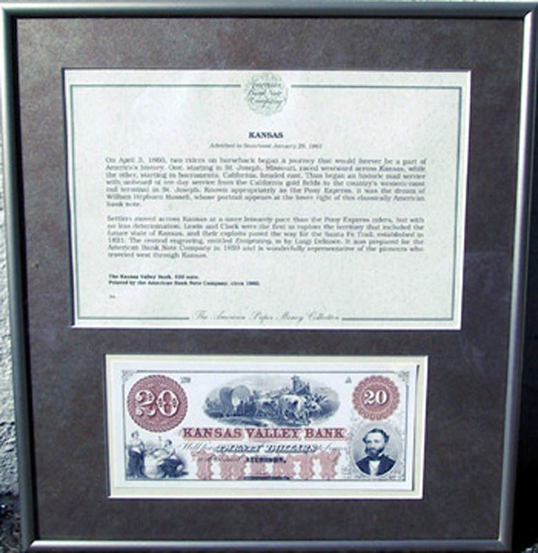 Lot of 10 Framed US Bank Notes, Various States Intaglio Etchings