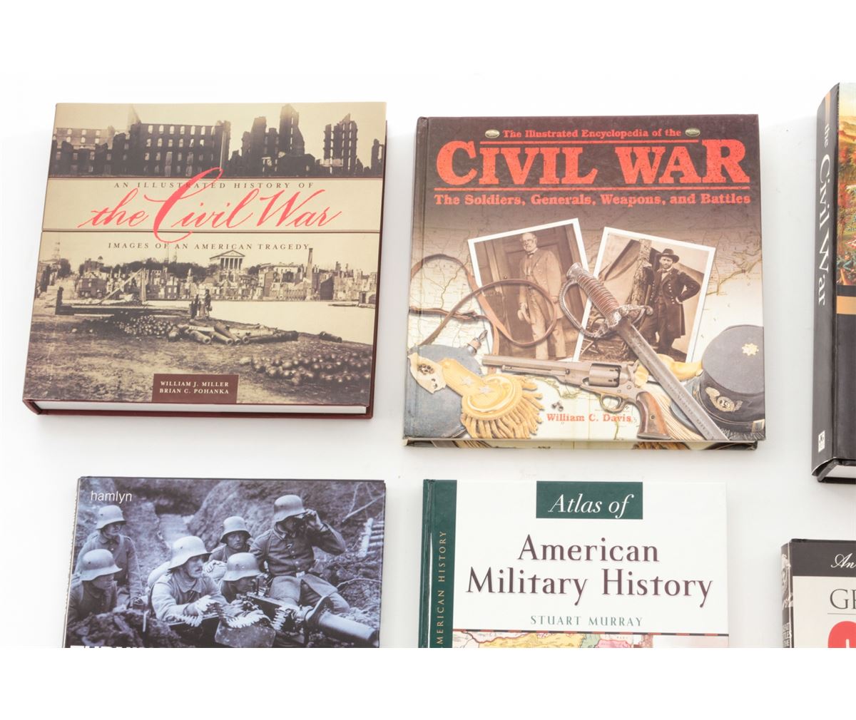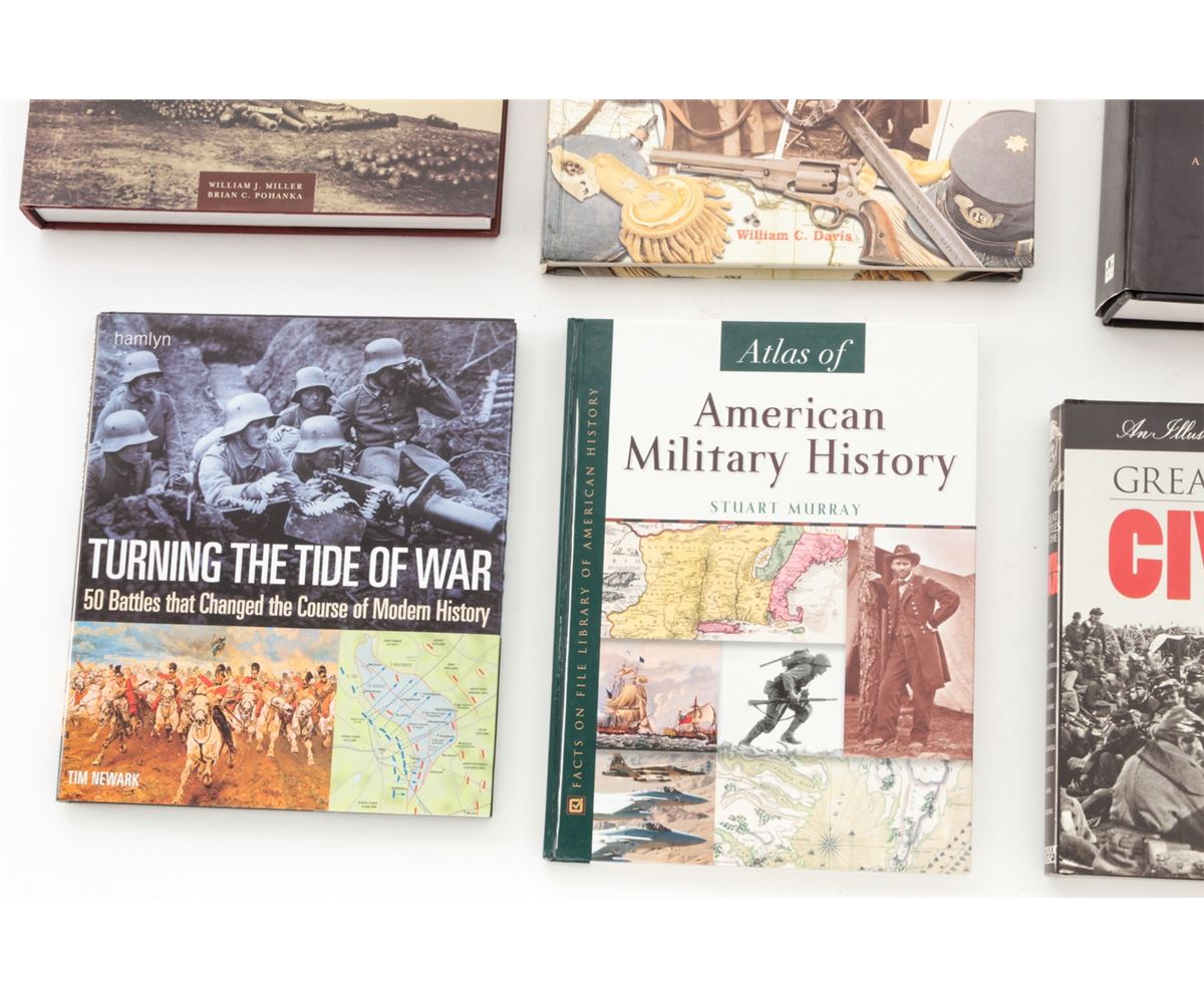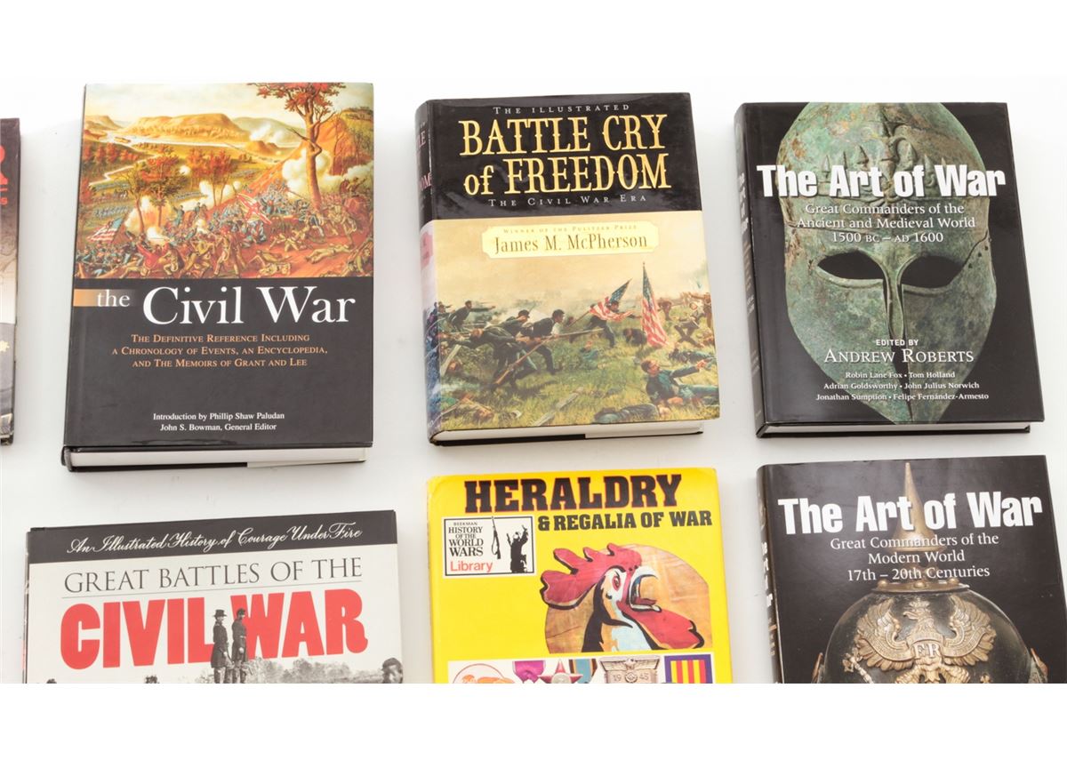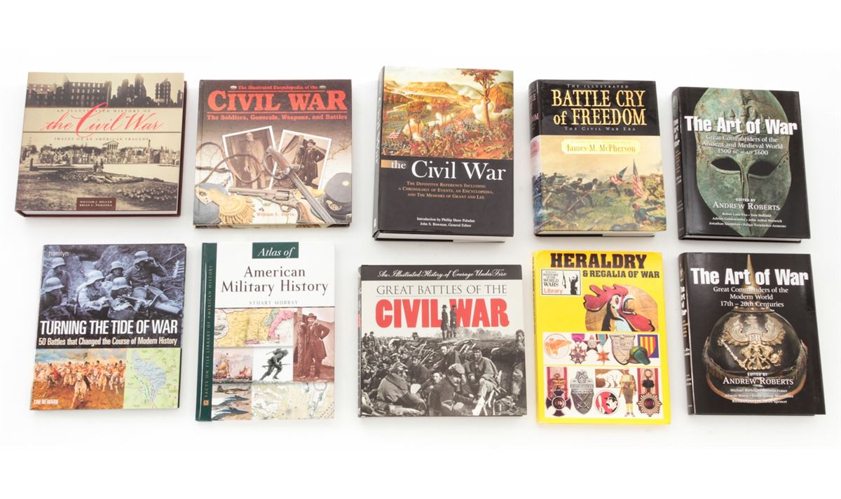 Lot of Ten (10) Hardbound Books on the Civil War and the Art of War, including ''The Illustrated Battle Cry of Freedom, The Civil War Era'', by James M. McPherson; ''The Illustrated Encyclopedia of the Civil War'', by William C. Davis; ''Atlas of American Military History'', by Stuart Murray; ''Great Battles of the Civil War'', etc. All are in excellent condition, most with dustcovers. Est.: $200-$300/lot.