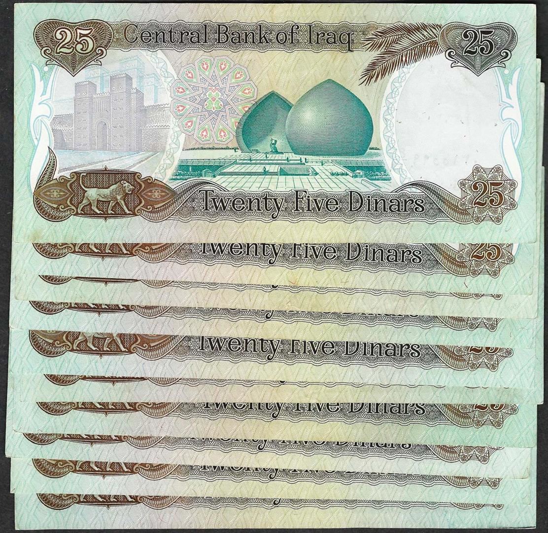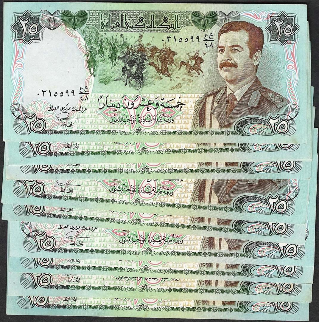One Lot of (10) Iraqi 25 Dinars Saddam Hussein Notes.