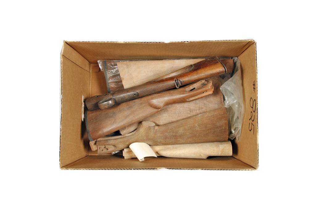 Lot of 10 Long Gun New Stock Blanks Box lot of stock blanks, rough cut, for various guns including: Three Rolling Block stocks and one forearm, three Norinco Mdl 99 stocks, one Husqvarna Shotgun stock, one Colt Lightning 32 stock and forearm, one WinchBox lot of stock blanks, rough cut, for various guns including: Three Rolling Block stocks and one forearm, three Norinco Mdl 99 stocks, one Husqvarna Shotgun stock, one Colt Lightning 32 stock and forearm, one Winchester 94 stock, andone unknown.