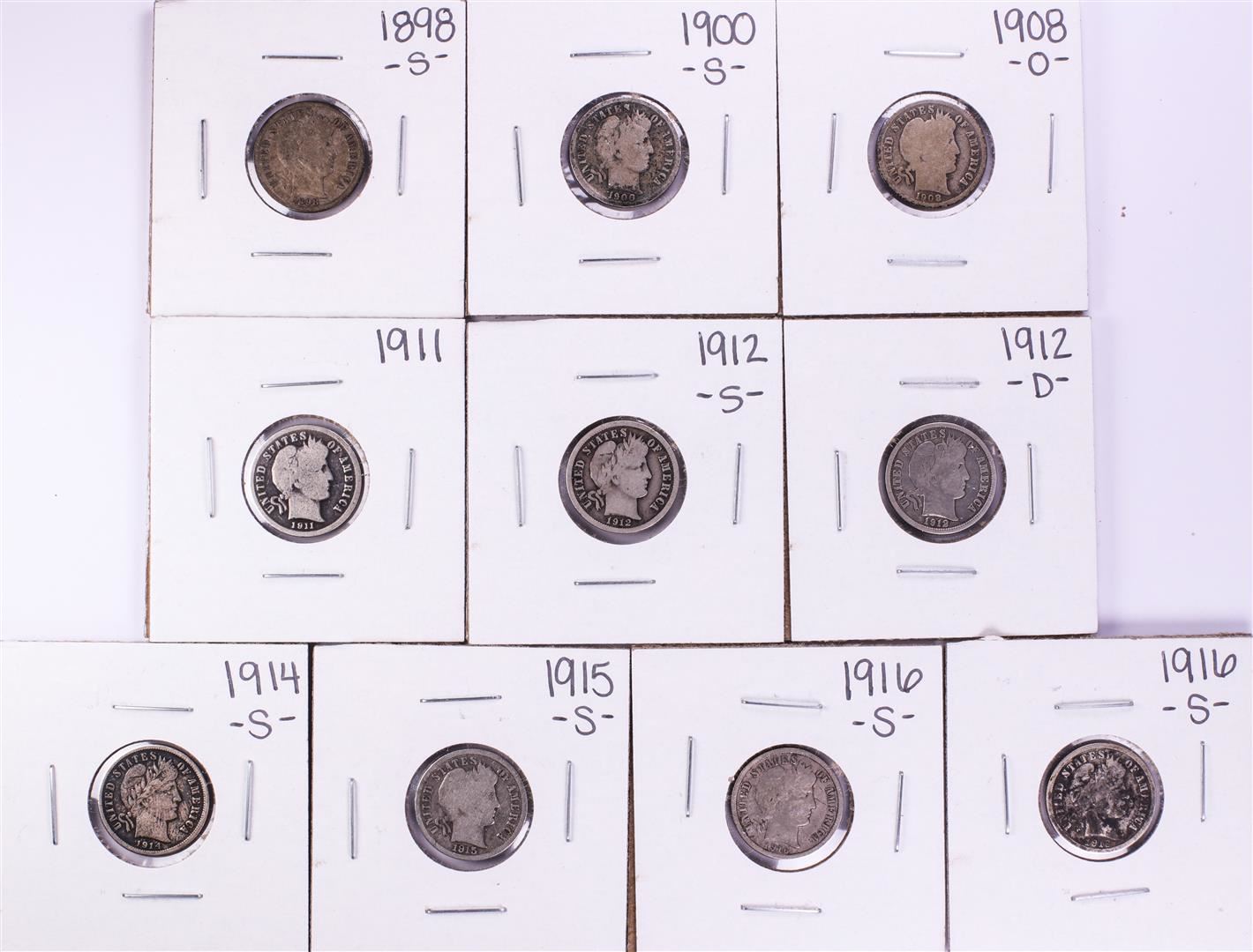 One Lot of (10) Miscellaneous Date Barber Dime Coins.