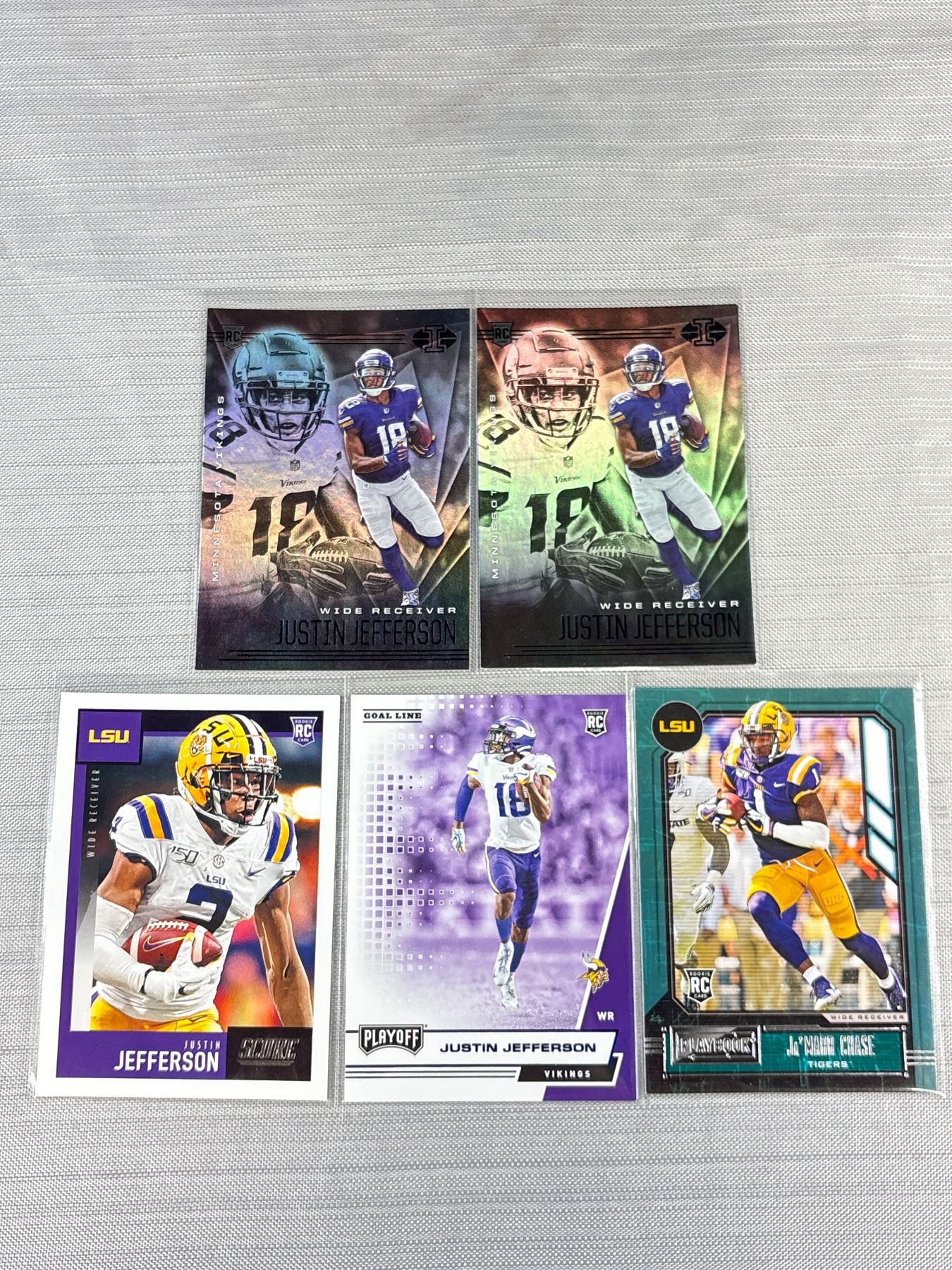 Lot of 10 NFL - Justin Jefferson & Ja'marr Chase Rookie Cards
