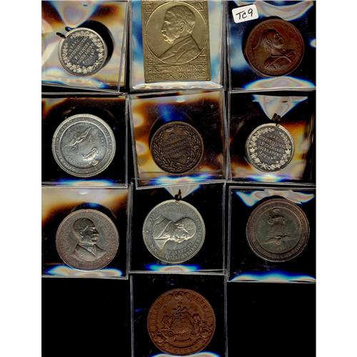 Lot of 10 Ontario region medals. Includes an undated Kenel Club medal, 2 Gov Gen'l of Canada medals dated 1884 and 1885, 3 medals related to School Board and Teachers two dated 1891 and one undated, two Sarnia 1888 Firemen medals, 1914 CNE and a Joseph B