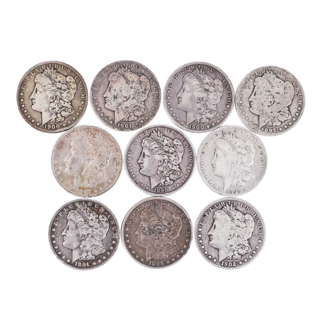 One Lot of (10) Pre 1921 $1 Morgan Silver Dollar Coins.