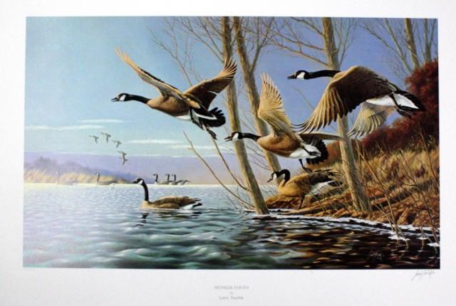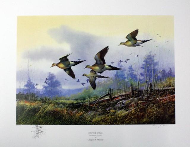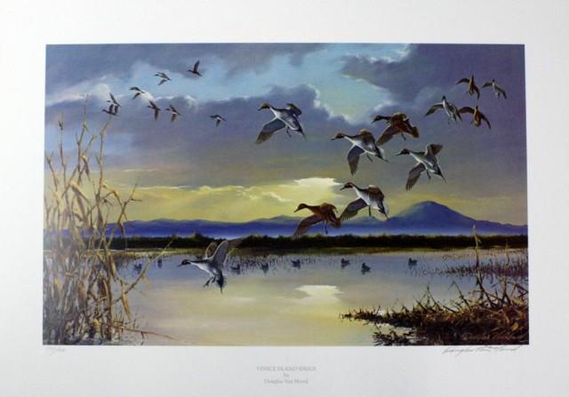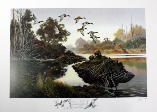 Lot of 10 Prints all numbered and signed: “Alacassine Memory” by Lee LeBlanc, image size 25” x 16”., “Moving Out” by Larry Barton, image size 15 ¾” x 18 ½”., “Venice Island Sprigs” by Douglas Van Howd, image size 24” x 15”., “The Professional” by William Gillies, image size 18” x 24”., “Honker Haven” by Larry Toschik, image size 25 ½” x 15 ½”., “Cumberland Spring” by Larry Toschik, image size 24” x 16”., “Mallard Morning” by Larry Toschik, image size 25” x 16 ¼”., “On The Wing” (Morning Doves) by Gregory F. Messier, image size 21” x 14 ½”., “The Beet Field” by Larry Toschik, image size 12 ½” x 21 ½”., “Tired Mama” by William Gillies, image size 22” x 16 ½”. Gallery Retail $395. each. Est. $500-1,000