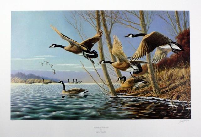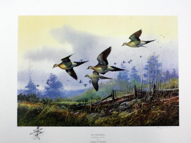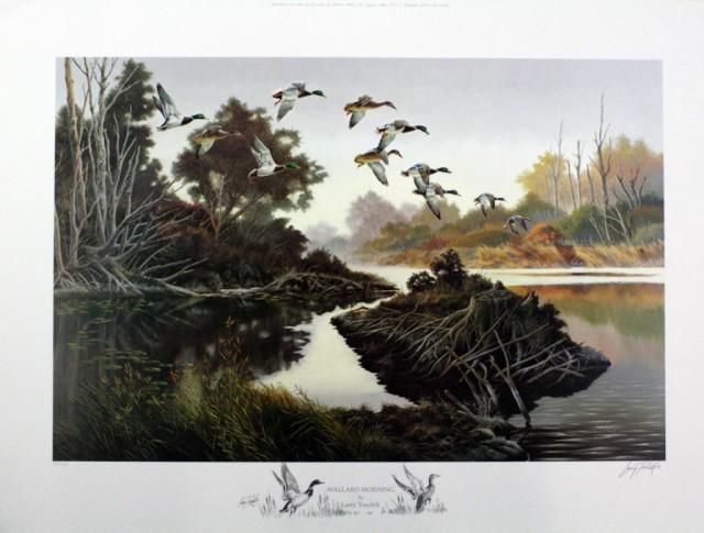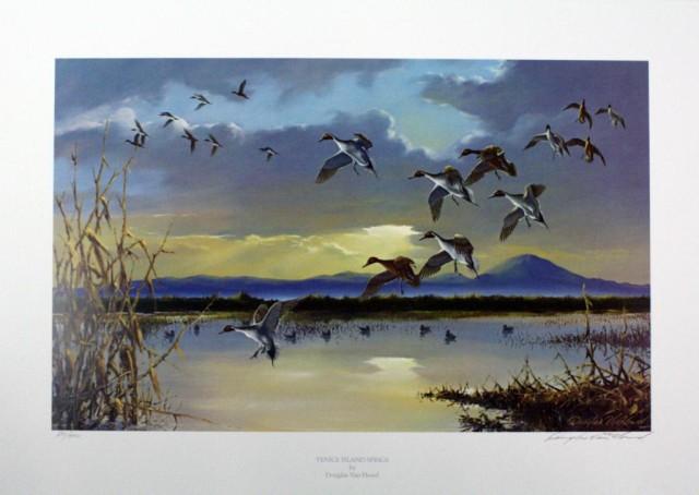 Lot of 10 Prints all numbered and signed: “First Outing” by Douglas Van Howd, image size 23 ¾” x 16”. “Moving Out” by Larry Barton, image size 15 ¾” x 18 ½”., “Venice Island Sprigs” by Douglas Van Howd, image size 24” x 15”., “The Professional” by William Gillies, image size 18” x 24”., “Honker Haven” by Larry Toschik, image size 25 ½” x 15 ½”., “Cumberland Spring” by Larry Toschik, image size 24” x 16”., “Mallard Morning” by Larry Toschik, image size 25” x 16 ¼”., “On The Wing” (Morning Doves) by Gregory F. Messier, image size 21” x 14 ½”., “The Beet Field” by Larry Toschik, image size 12 ½” x 21 ½”., “Tired Mama” by William Gillies, image size 22” x 16 ½”. Gallery Retail $395. each. Est. $500-1,000