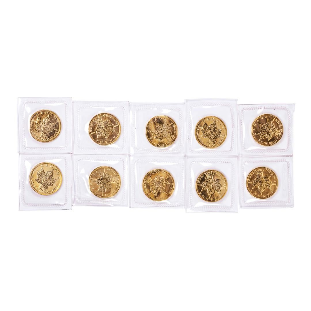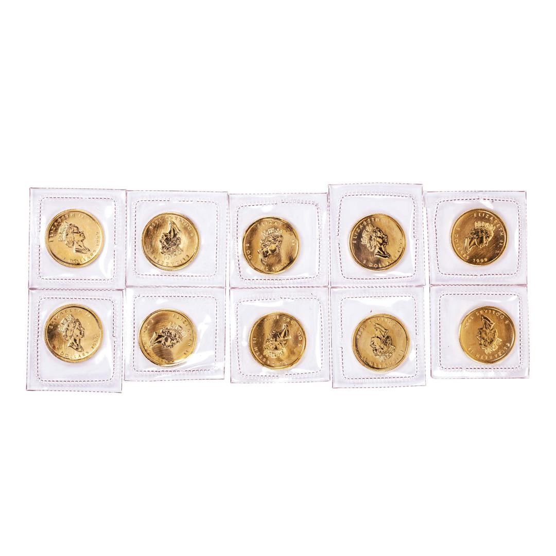One Lot of (10) Sealed 1999 Canadian $5 Maple Leaf Gold Coins.