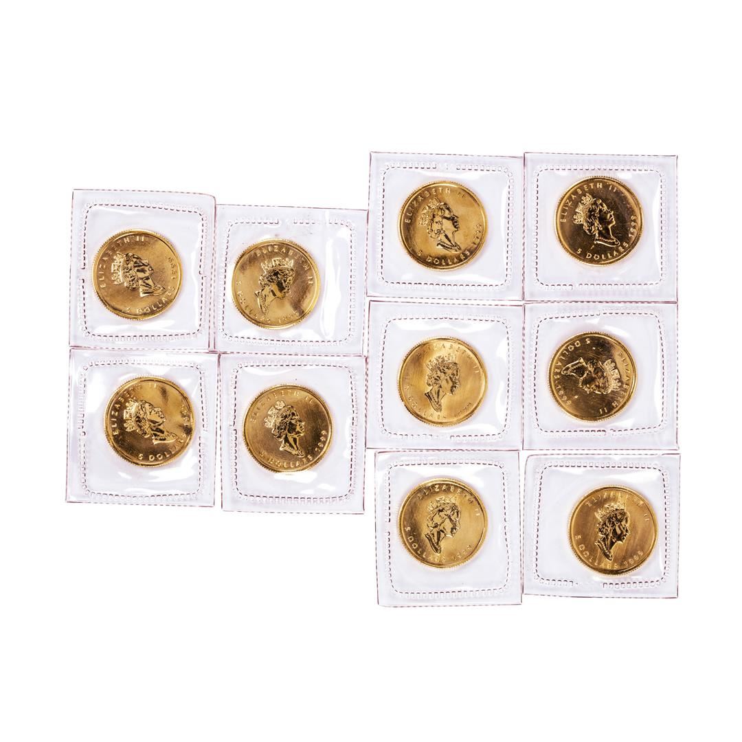 One Lot of (10) Sealed 1999 Canadian $5 Maple Leaf Gold Coins.