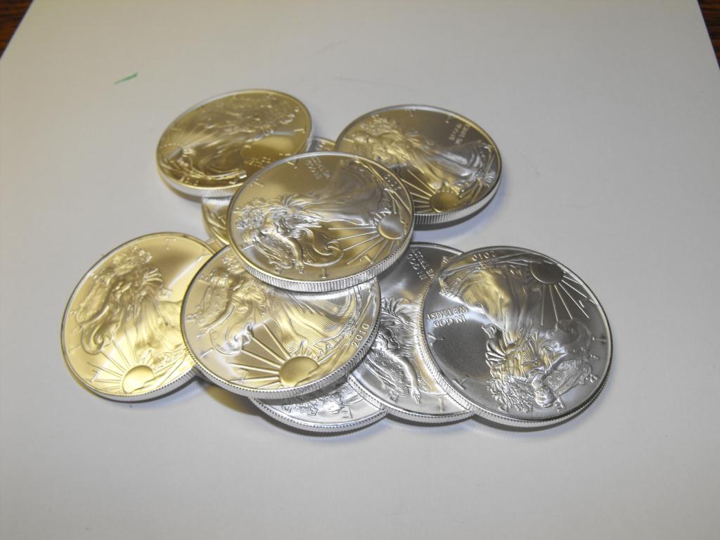 A lot of 10 random date items-The American Silver Eagle is the official silver bullion coin of the United States. First released by the United States Mint in 1986, it is struck in one size only: 1 troy oz of .999 pure silver as guaranteed by theU.S. Government. This coin has a face value of $1, is authorized by the United States Congress and backed by the United States Mint for weight and content.