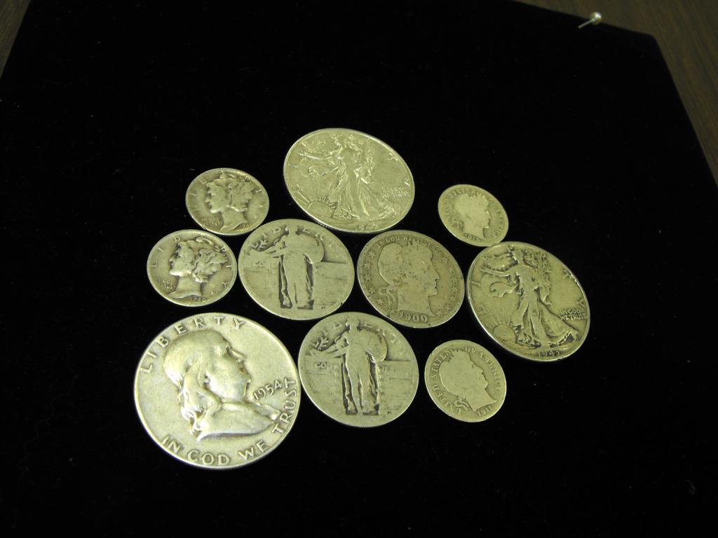 (3) 90% Halves- 2 WL-1 Franklin- (3) 90% Quarters- 2 SL- 1 Barber- (4) 90% DImes- 2 Barber-2 Mercury- Coin dates will vary- You will receive the total coins you see in the picture. They may be different dates and grades.