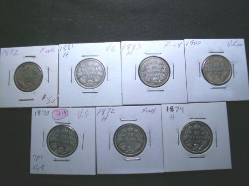 Lot of 10 Victorian 25¢ pieces including 1870, 1871H, 1872H, 1874H, 1881H, 1883H, 1888, 1892, 1899, 1900. All Good-6 or better.