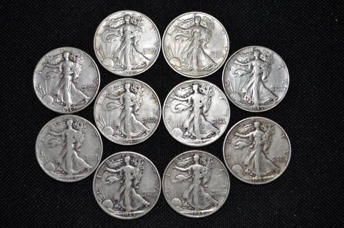 A lot with 10 Walking Liberty Halves- g-xf grade, various dates. All of our items are Official US Asset Forfeiture & Seizures acquisitions. They are not privately held items. They may have belonged to bankrupt asset dealers, coincollectors, coin dealers, drug dealers, con men and the like. We acquire these assets and are ordered by the administrator to sell them at auction. We have a 38,000 person client list that buy regularly from us. Most of the items we sellhave prebids, mail bids, left bids and internet bids. On rare occassion items will have no starting bid and will be passed. These items are offered back up at a later date. We sell millions of items annually and do not have the time checkeach lot for key dates, mint marks, error coins and more. This is the allure of our sales. Read our Testimonials on our website. We sell quality tangible assets for less. An investment opportunity that is sure to delight the beginningcollector or investor, all the way to the seasoned , experienced investor. We sell all types of assets from collectibles to land. With a bit of all in between. Look us up at our website, see what they are saying, and acquire your investment