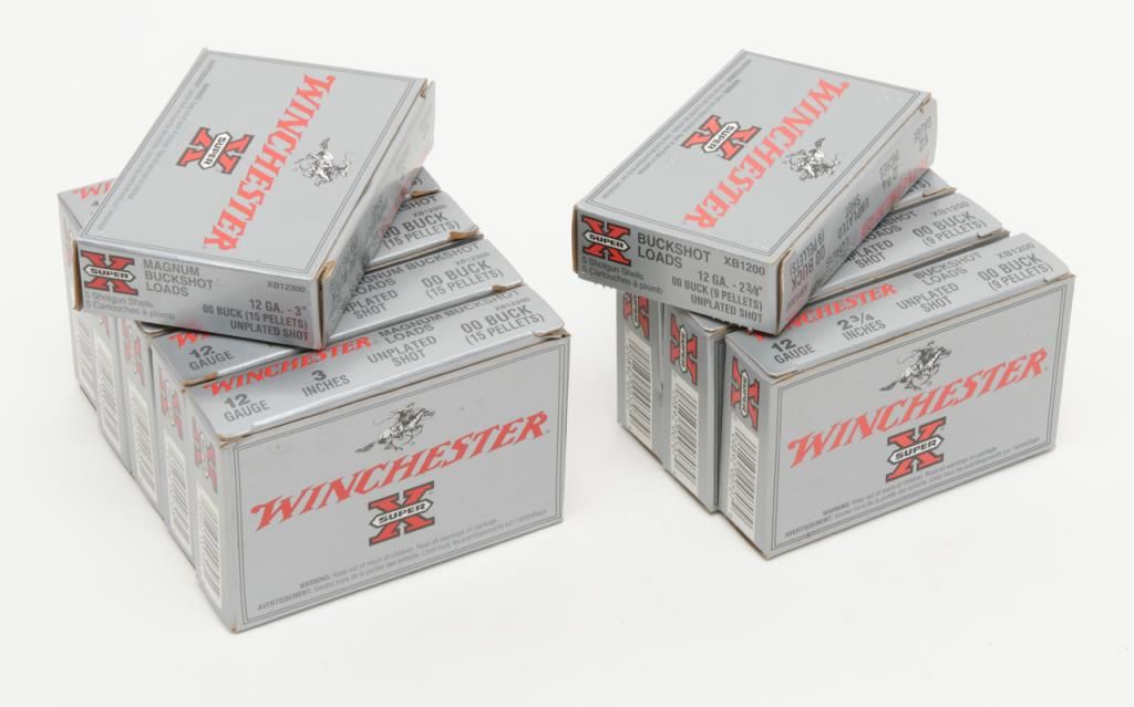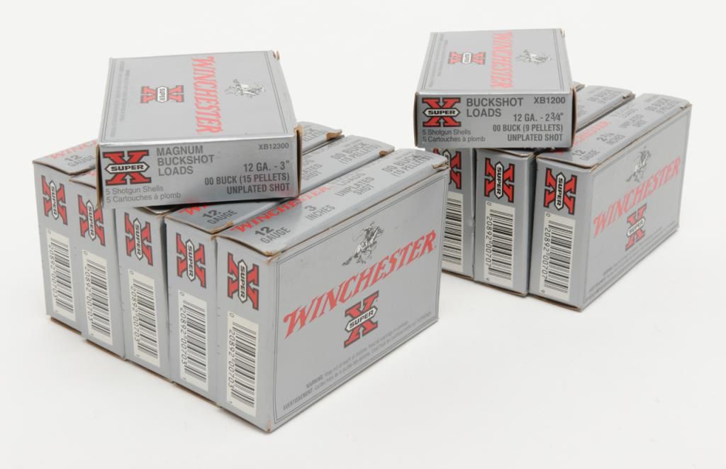 Lot of 10 boxes (5 shells ea.) of Winchester 12 gauge buckshot loads. Est.: $100-$200.