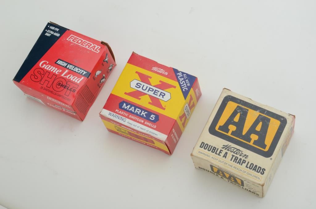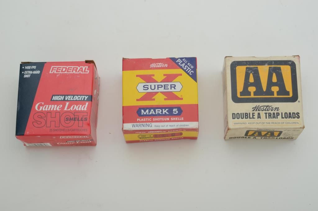 Lot of 10 boxes of 12 gauge ammo (one partial); Western, Federal, Peters and Fiocchi. Est.: $40-$60.