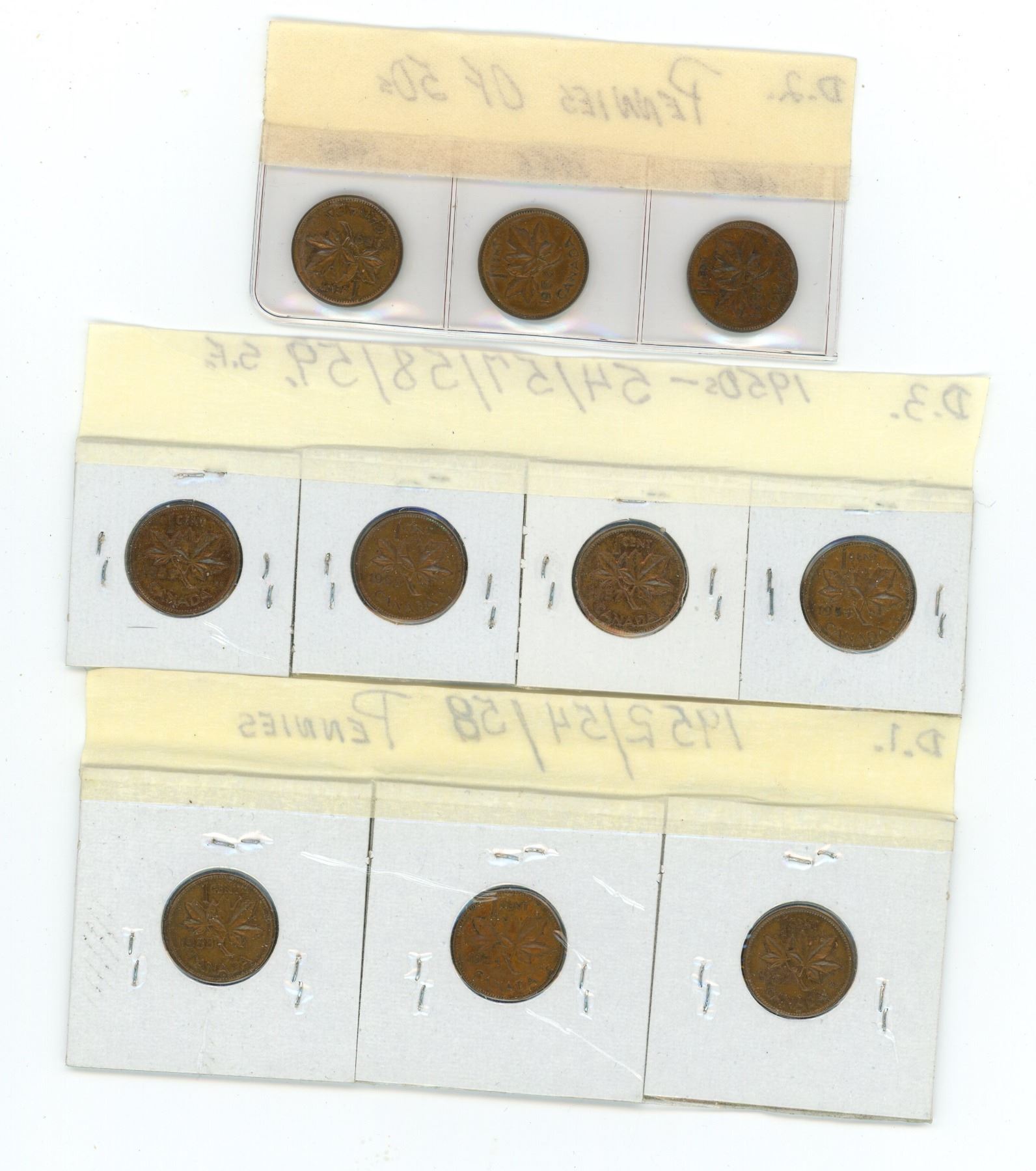 Lot of 10 canadian pennies 1952-59 mixed dates