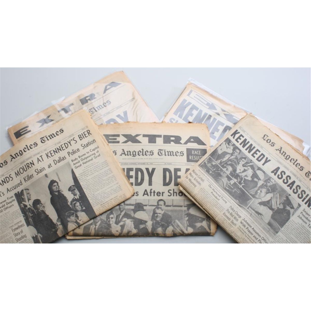 Lot of 10 misc. stereoptic cards including one of Teddy Roosevelt on a boat and a lot of 10 newspapers covering the assassination of President Kennedy and later killing of Lee Harvey Oswald. Est.: $50-$75.