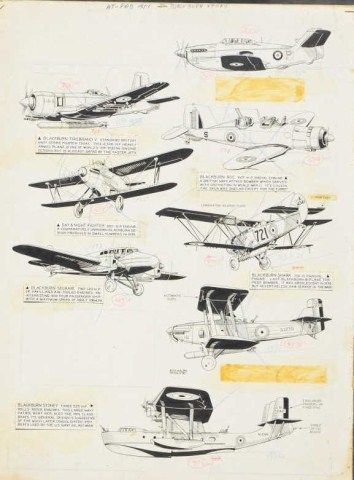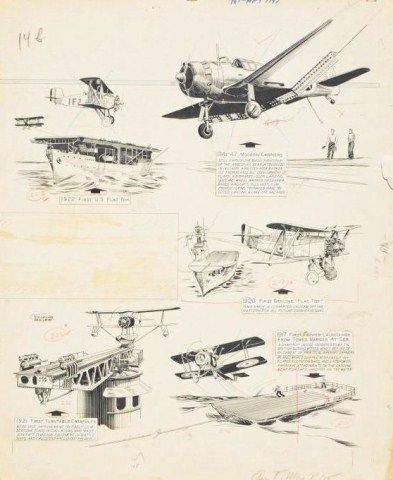 Lot of 10 original artwork for aviation magazines with paintings by Cal Smith, Alfred Swilies and others; various conditions. From the estate of Robert Petersen. Est.: $200-$400.