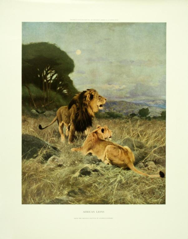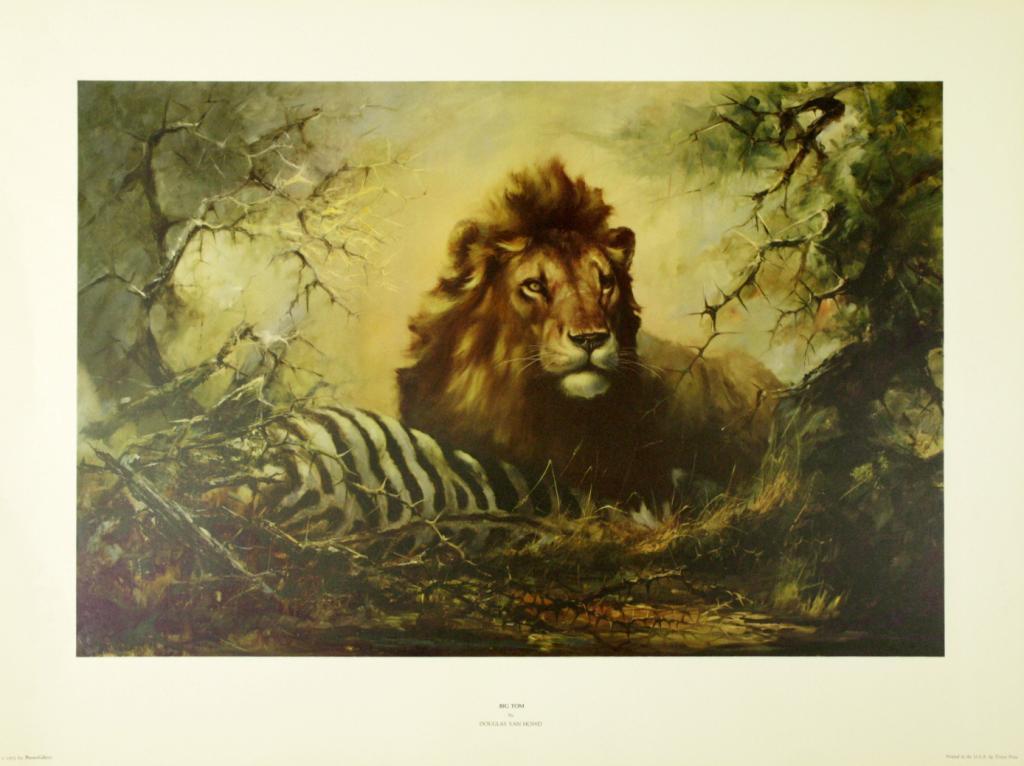 Lot of 10 prints consisting of: A) "High Vantage Point" by Douglas Van Howd. Image size approx. 29 1/2"w x 22"h. B) "Big Tom" by Douglas Van Howd. Image size approx. 30"w x 20"h. C) Untitled print by Robert Kuhnsigned and numbered 23/750. Image size approx. 26 1/2"w x 17 1/2"h. D) "Challenge at Bobcat Creek" by Douglas Van Howd. Image size approx. 23 3/4"w x 18"h. E) Untitled print by Robert Kuhn, signed andnumbered 263/750. F) "White Tailed Deer" by Guy Coheleach. Image size approx. 23 1/4"w x 17 1/2"h. G) "Eve" by Toni Helfer. Image size approx. 22"w x 29"h. H) "Old Mo" by Toni Helfer. Image size approx. 22"w x 29"h. I)"Zamba" by Toni Helfer. Image size approx. 22"w x 29"h. J) "African Lions" by Wilhelm Kuhnert. Image size approx. 17"w x 21 1/2"h. Est. $350-700