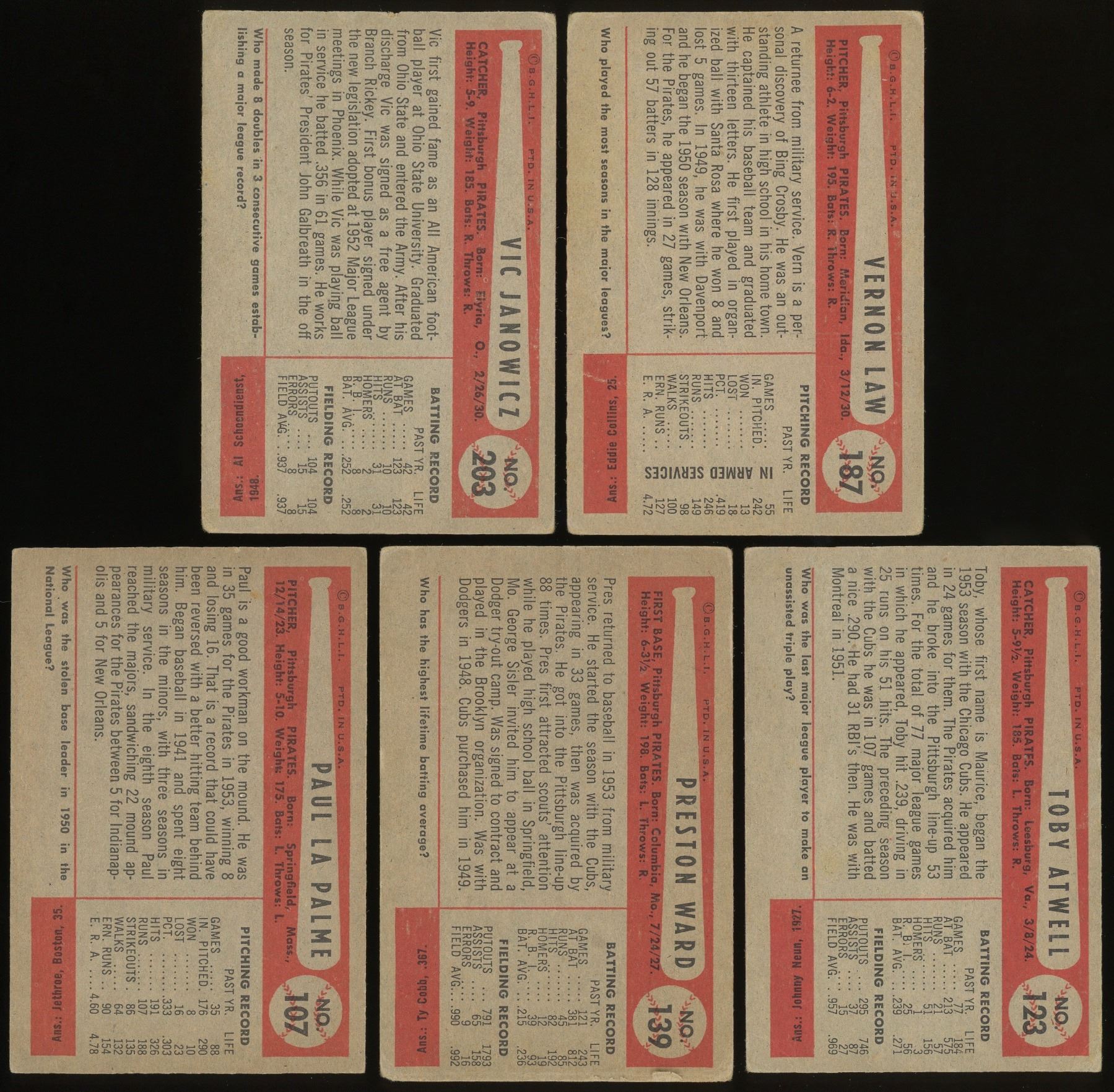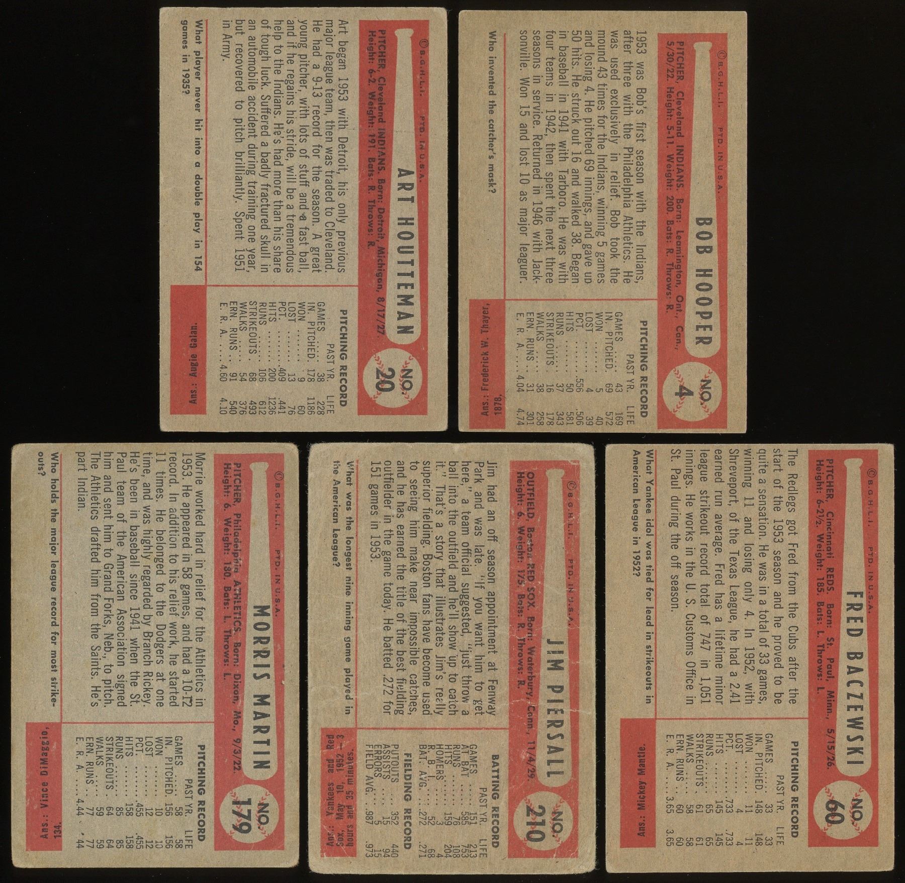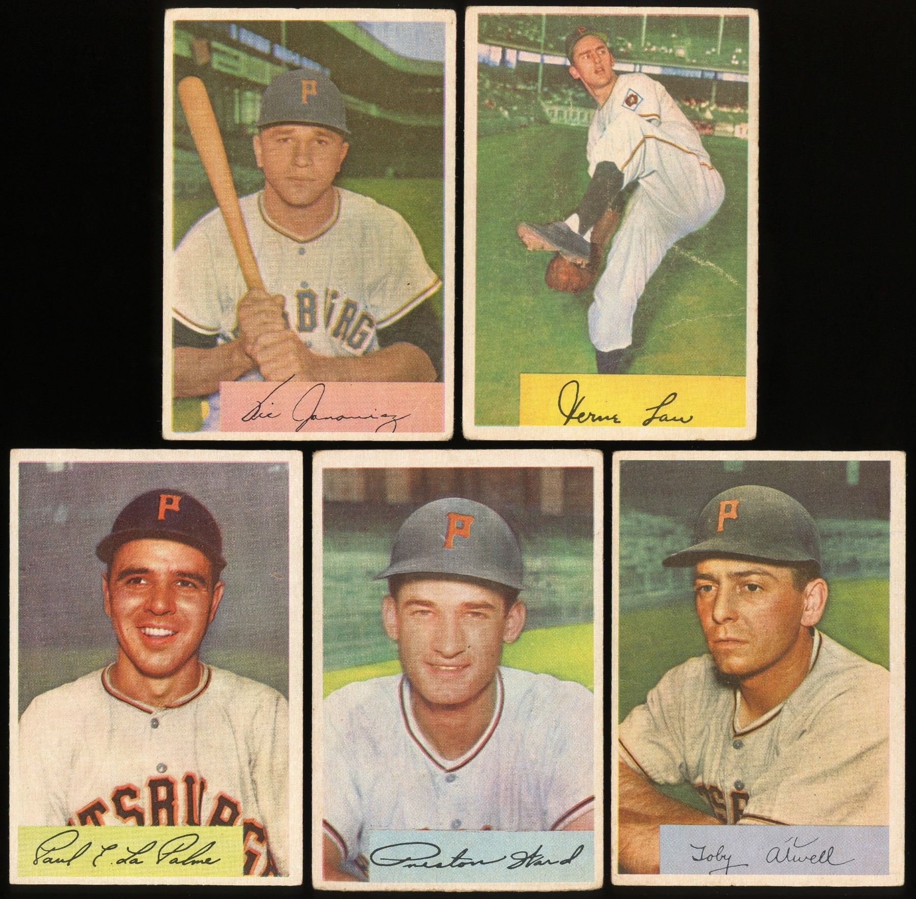 Lot consists of 10 cards from the 1954 Bowman baseball issue, grades from PR to EX, mostly VG. Includes: #4 (EX), 20, 60 RC, 107 (VG-EX), 123, 139, 179, 187, 203, 210.