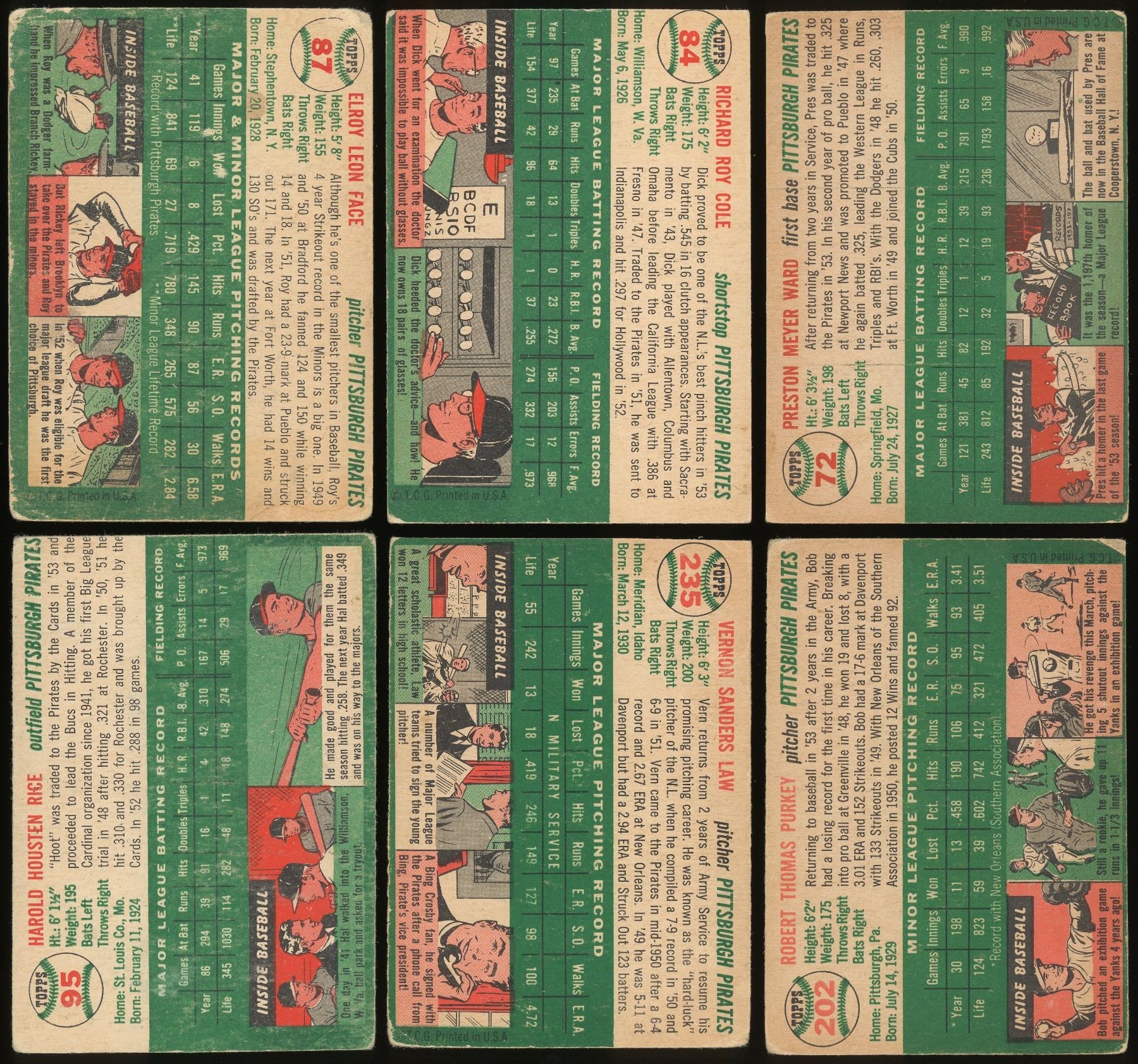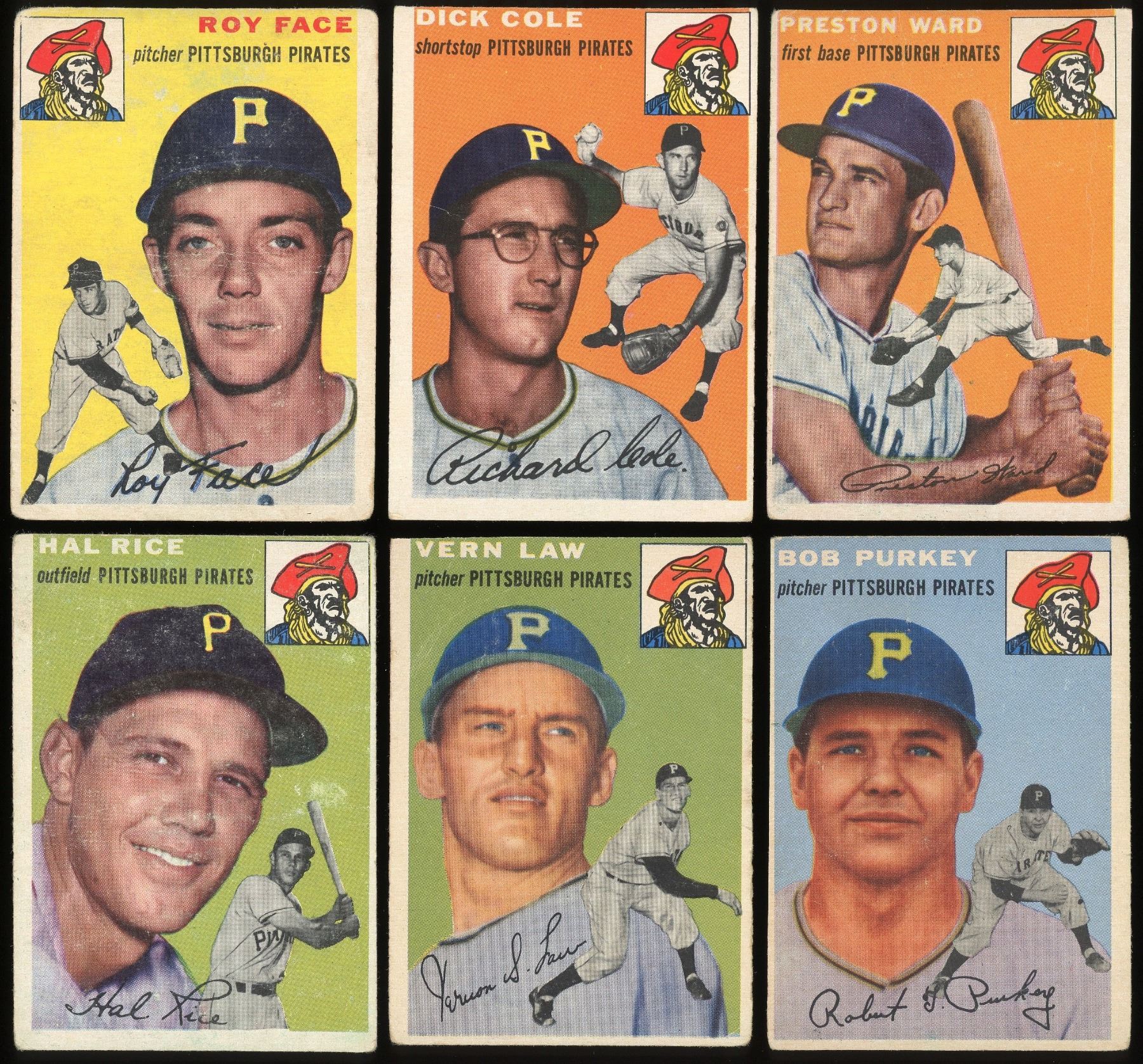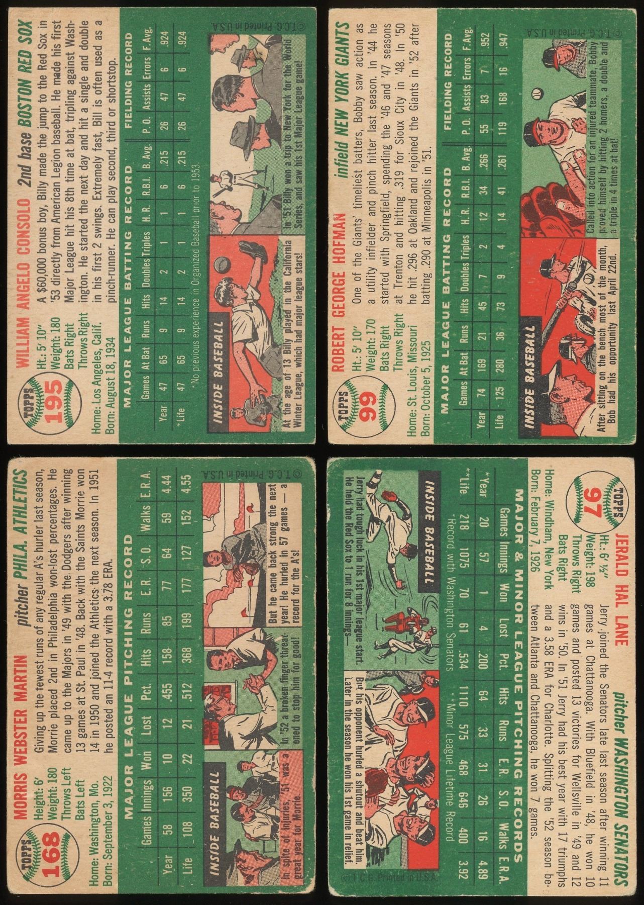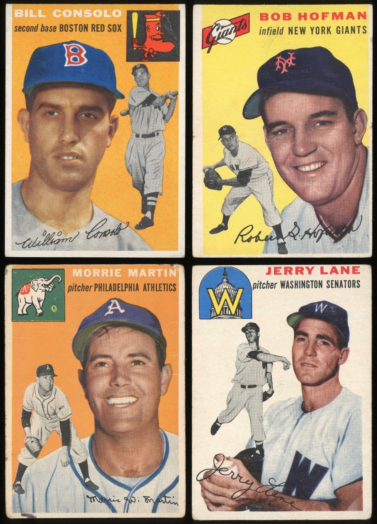 Lot includes 10 cards from the popular 54 Topps set, grading GD to VG, includes: 72, 84 Cole RC, 87 Roy Face, 95, 97 Lane RC, 99, 168, 195 Consolo RC, 202 Purkey RC, 235 Law.