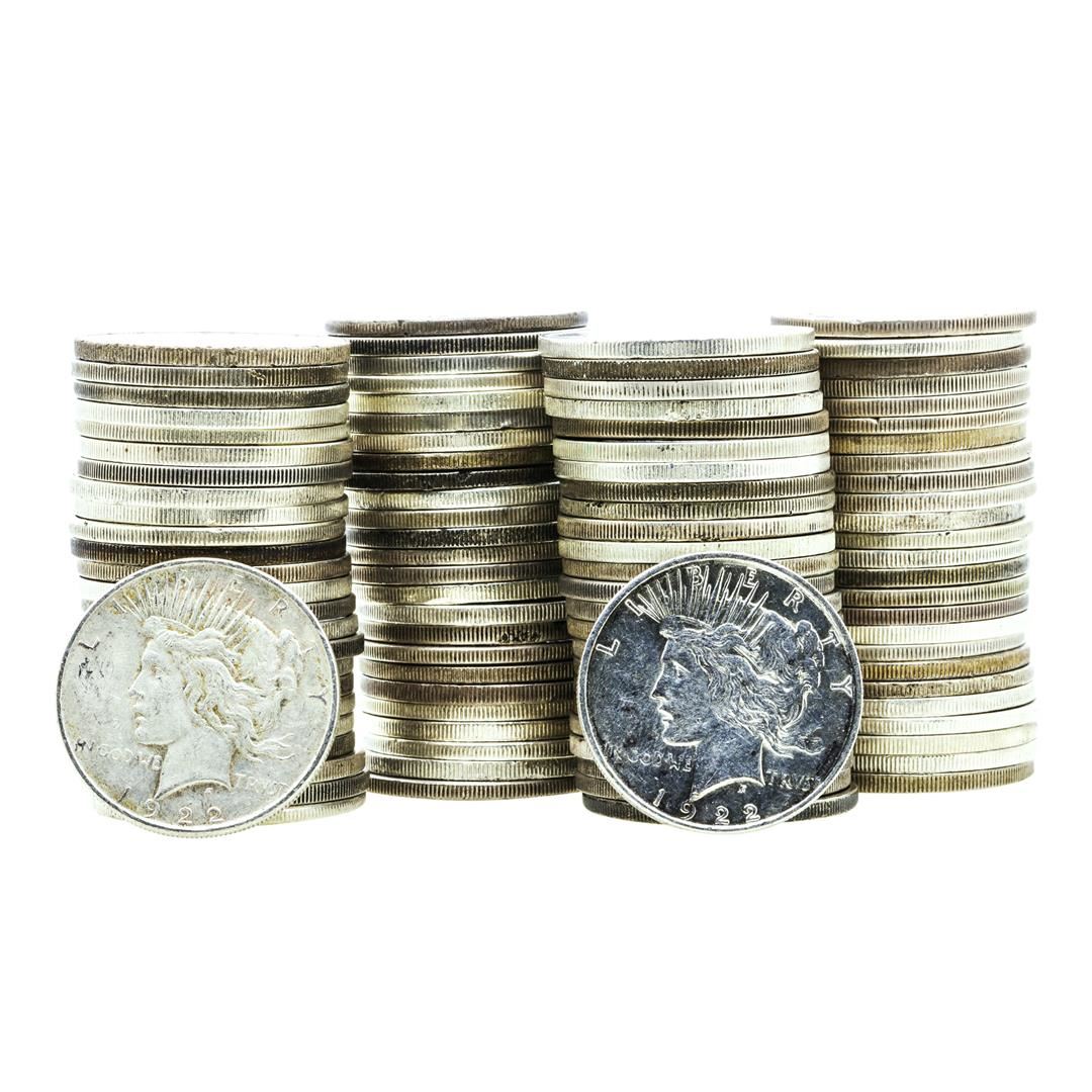 One Lot of (100) $1 Peace Silver Dollar Coins Culls.