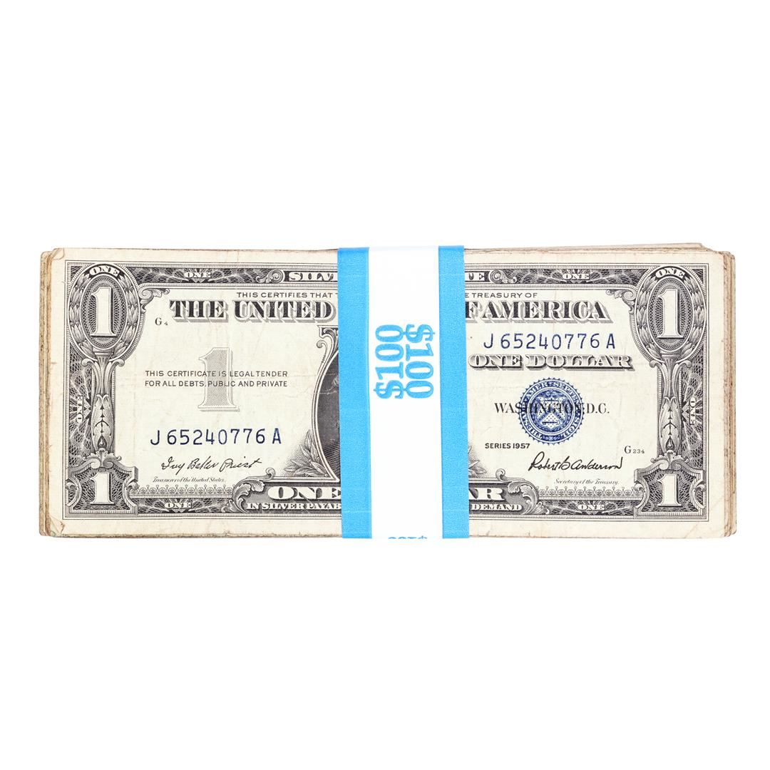 One Lot of (100) 1957/A/B $1 Silver Certificate Notes.