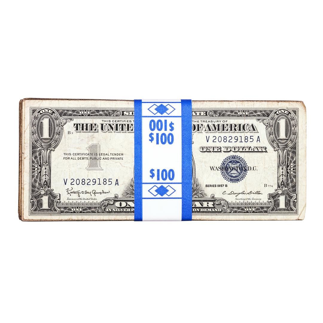 One Lot of (100) 1957B $1 Silver Certificate Notes.