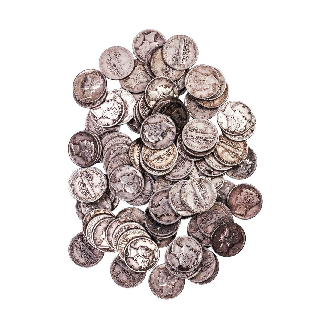One Lot of (100) Assorted Date Mercury Dime Coins.