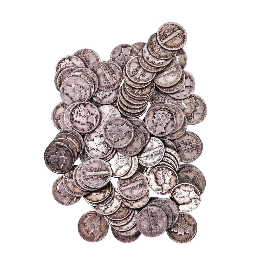 One Lot of (100) Assorted Date Mercury Dime Coins.