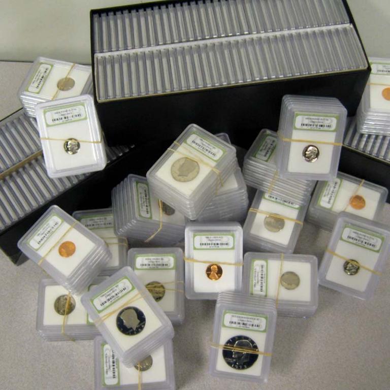 A lot with 100 US type coins. 1c,5c,10c,25c,50c coins all graded ms 69 or better.