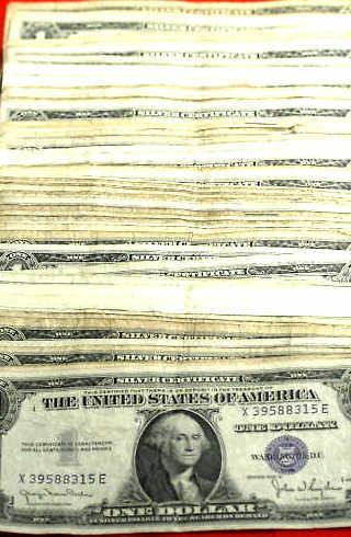 A lot of 100 circulated Silver Certificates- 1935-1957 assorted dates and MInts-All of our lots are US Asset Forfeiture & Seizures Acquisitions. Fresh to the market items, non auction circuit merchandise. Investment opportunity- Please view our website for future sales, buy it now items, feedback, questions, weekly tidbits on collecting, to consign or just to learn a bit about us. Visit us at www.afsauctions.us