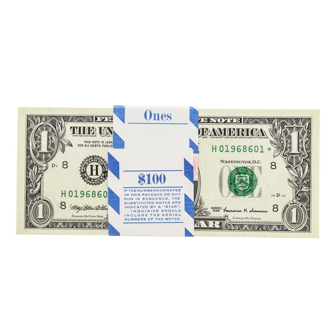 Lot of (100) Consecutive 1999 $1 Federal Reserve Star Notes St. Louis